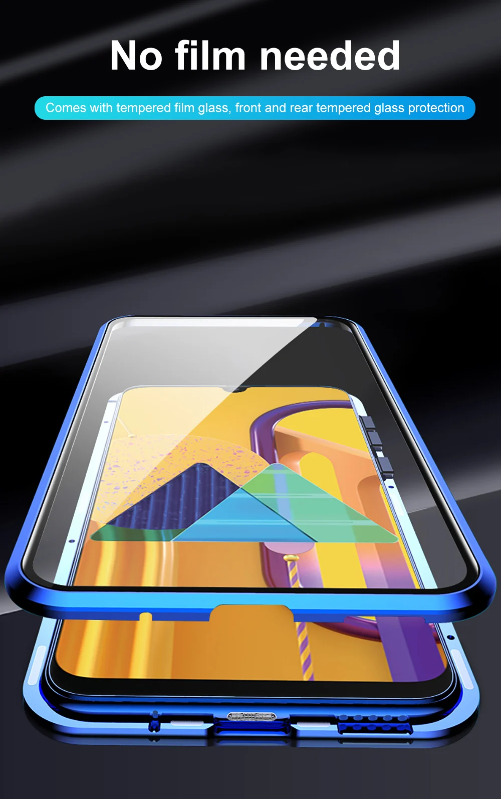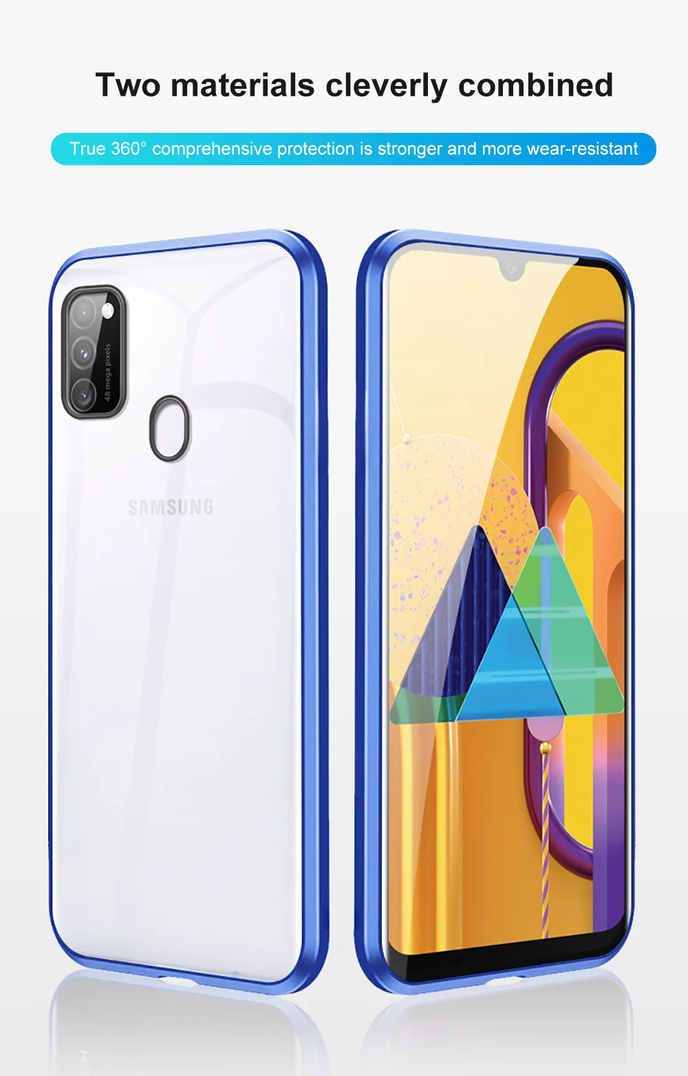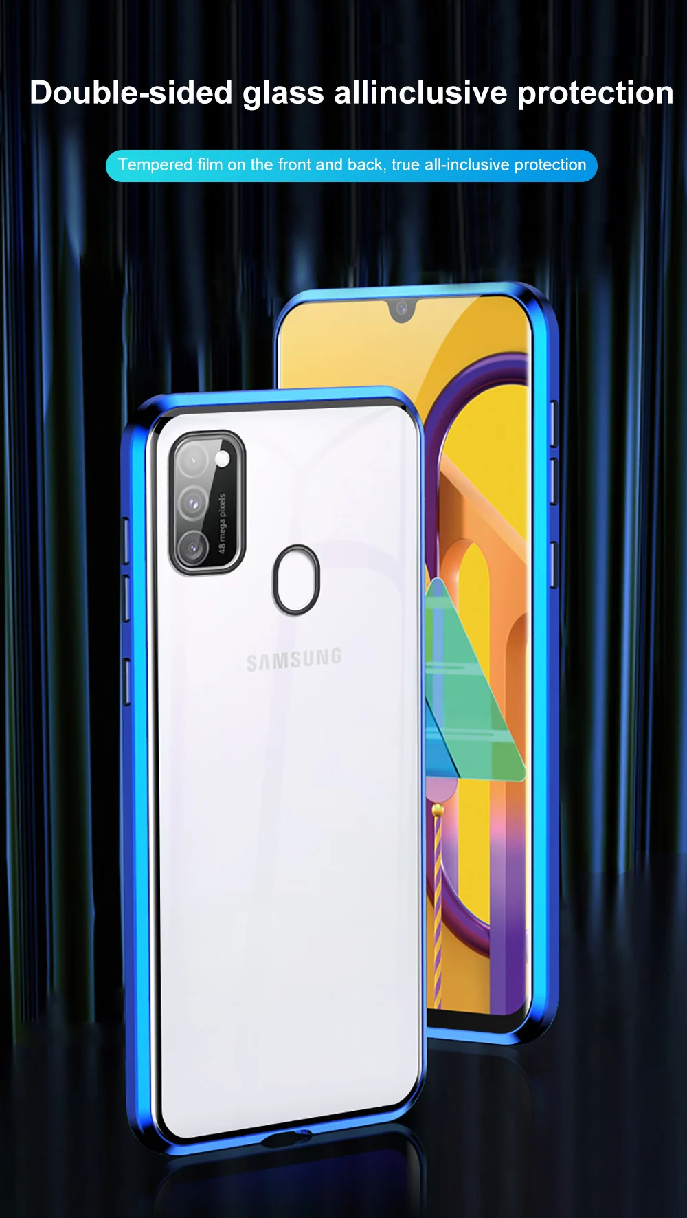Магнитный чехол для Samsung M31, M21, M30s, двусторонний чехол из закаленного стекла для Samsung Galaxy M31, M21, M30s