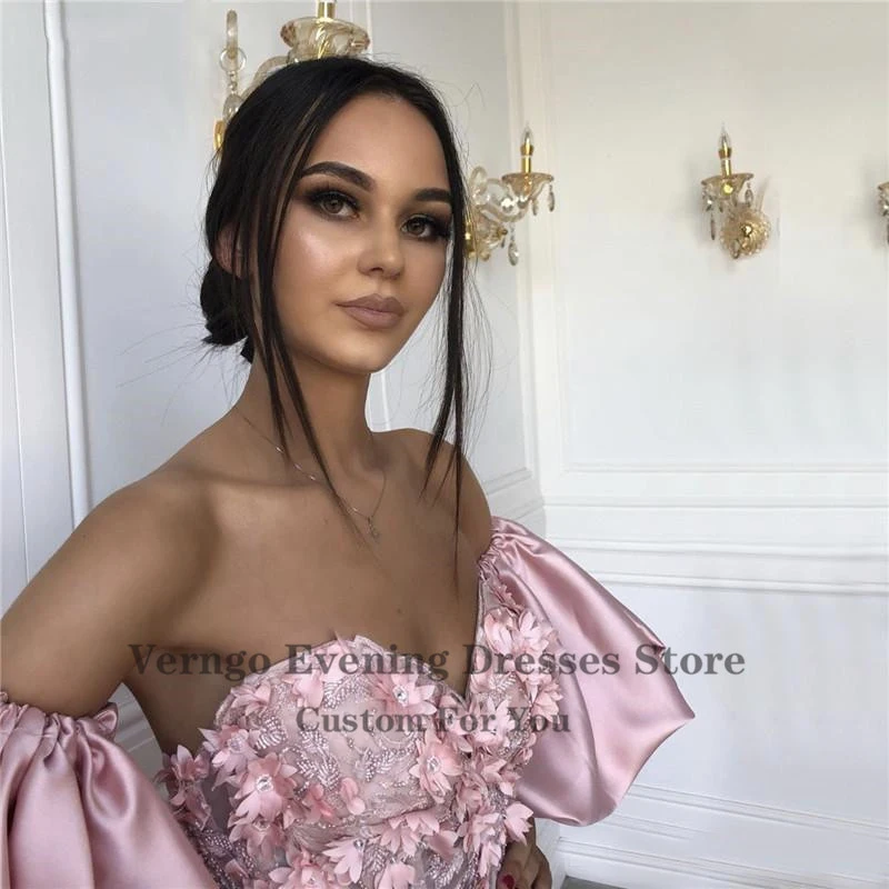 Verngo винтажное милое длинное вечернее платье розовые пышные рукава 3D Цветы А-линия Саудовская Арабская официальная Вечеринка платья 2021 красота