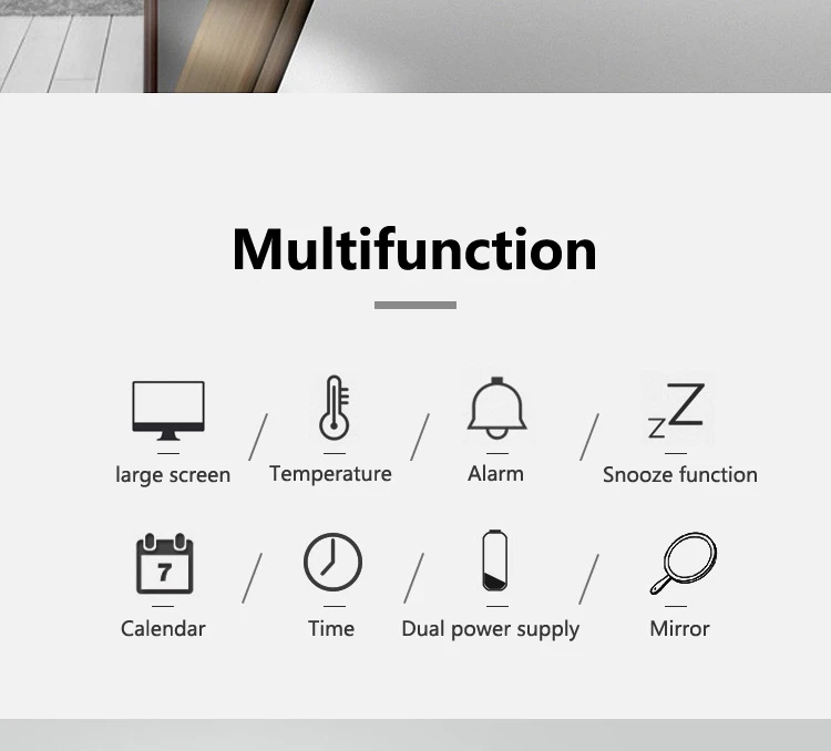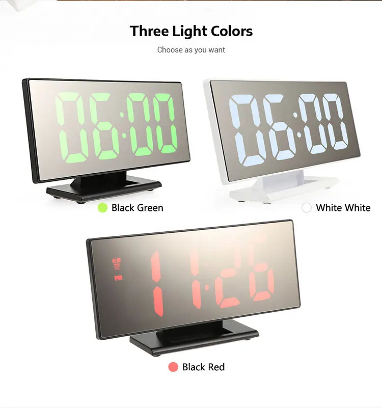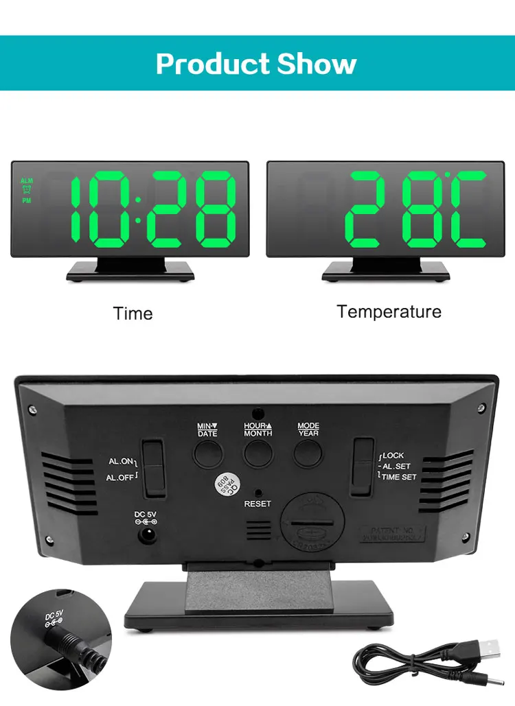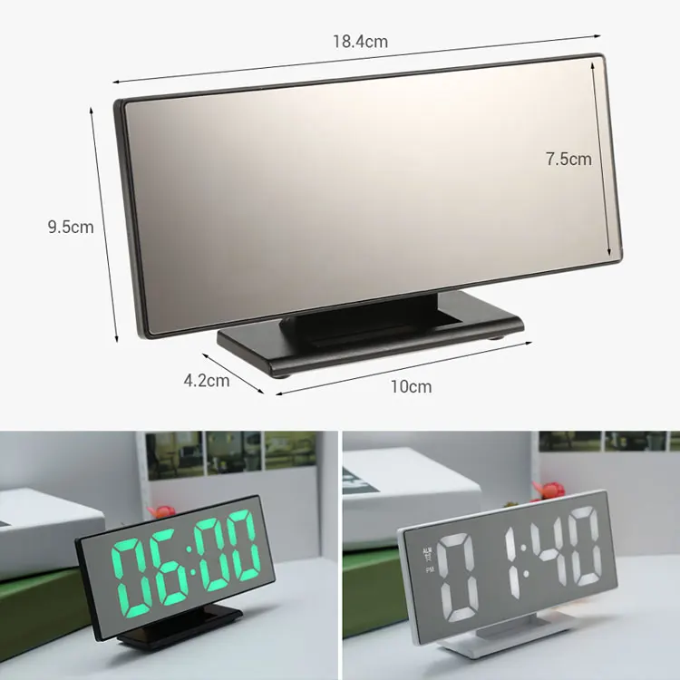Цифровой будильник, светодиодные зеркальные электронные часы, многофункциональные, с большим ЖК-дисплеем, цифровые настольные часы с календарем температуры