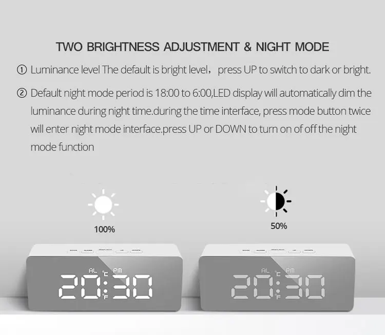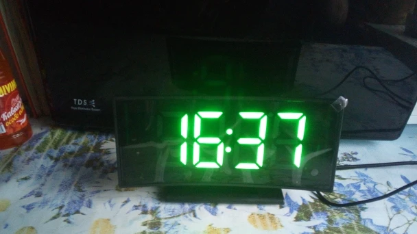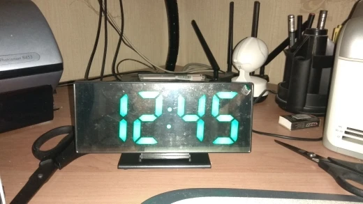 Хорошие часы, но с одним недостатком - очень ярко светятся даже в ночном режиме (18.00-7.00). Придётся под лицевое стекло-зеркало придумывать какую-то затемняющую плёнку-светофильтр. А в остальном - часы на 5 баллов, особенно рады будут люди с ослабленным зрением - крупные, удобночитаемые с расстояния цифры. Да, и часы приехали с незначительными царапинами на экране, защитной плёнки, как описано в различных обзорах на эти часы, не обнаружил.