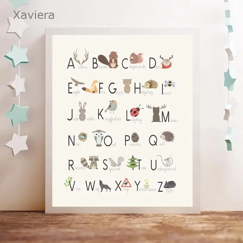 Картина на холсте с мультяшными животными, алфавит и цифры, Постер в скандинавском стиле для детского сада, настенное украшение для детской комнаты, картины