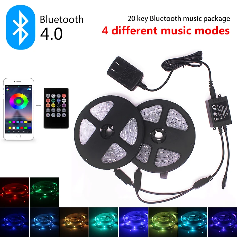 Светодиодные ленты с поддержкой Bluetooth Iuces LED RGB 5050 SMD, без водонепроницаемой гибкой ленты для ламп, лента с диодами 12 В постоянного тока, 5 м, 10 м, 15 м, 20 м, полный комплект