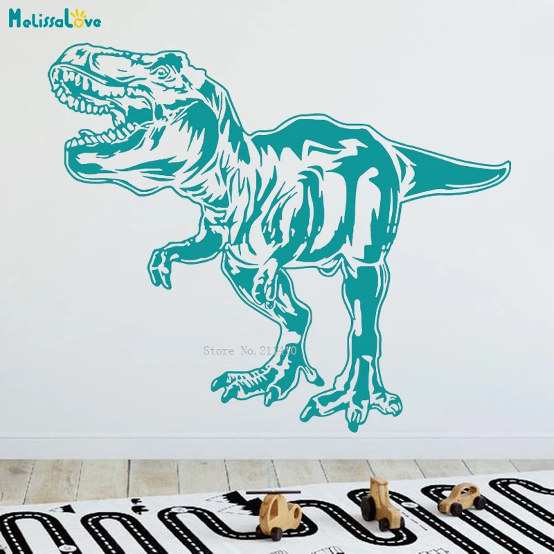 Динозавр охота на добычу стена арт-деко T-rex наклейка персонализированные подарки для комнаты мальчиков наклейки для детской самоклеющиеся YT5227