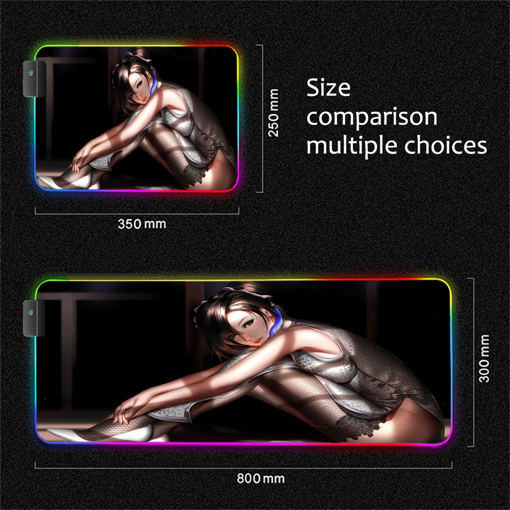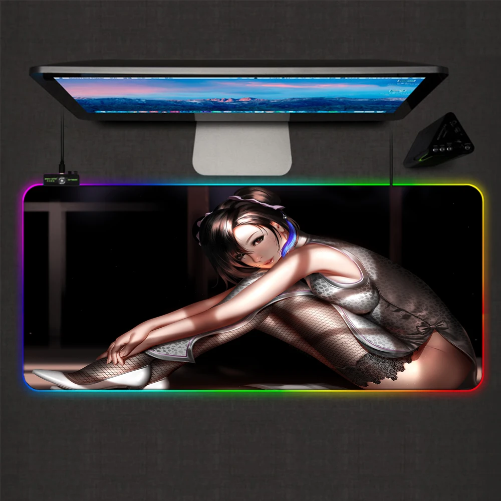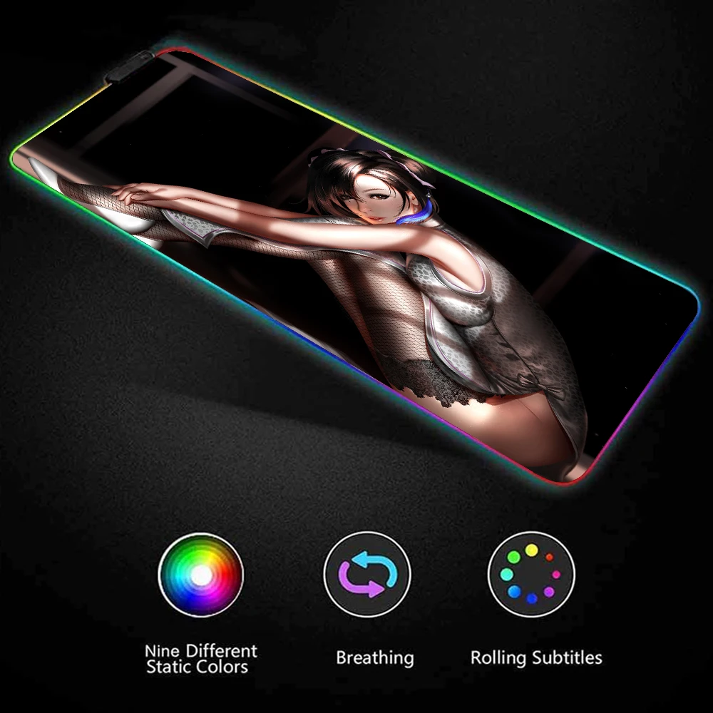 Коврик для мыши Tifa Lockhart со светодиодной подсветкой, RGB, цветной, аниме, Xxl, игровые настольные коврики, компьютерный ПК, настольные коврики, коврик для мыши, 900x400 см