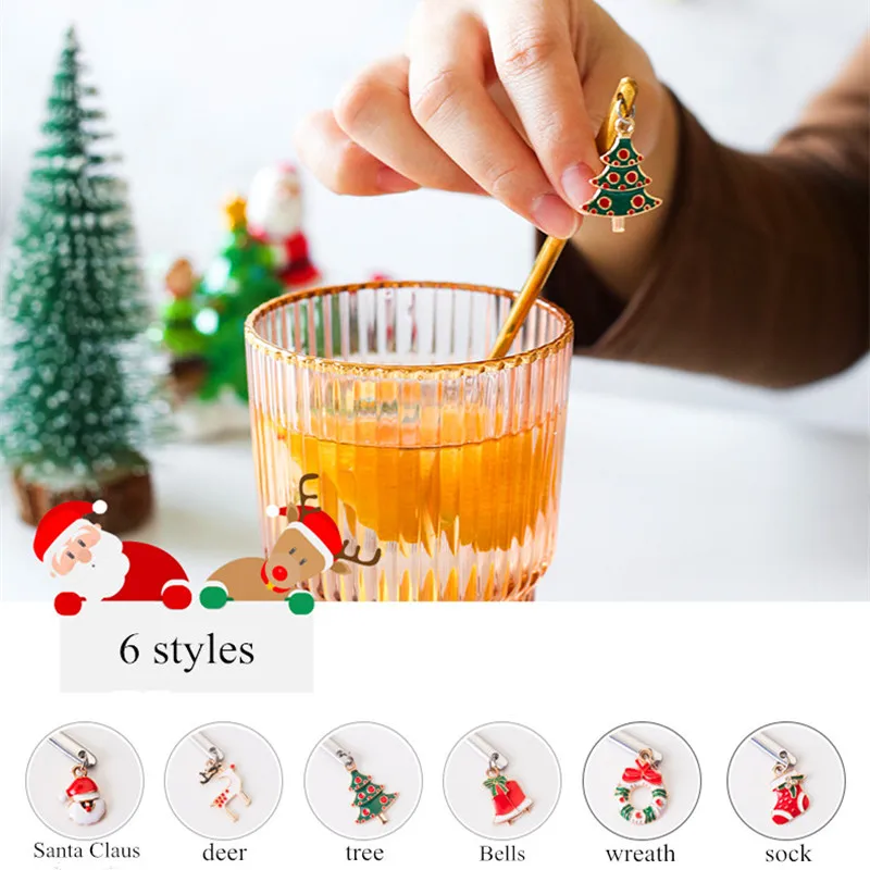 Металлический Счастливого Рождества ложки для кофе ложка-мешалка По...