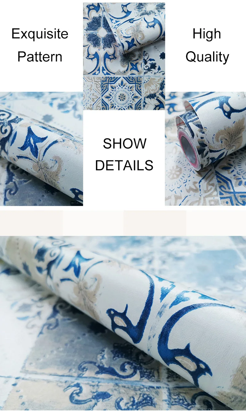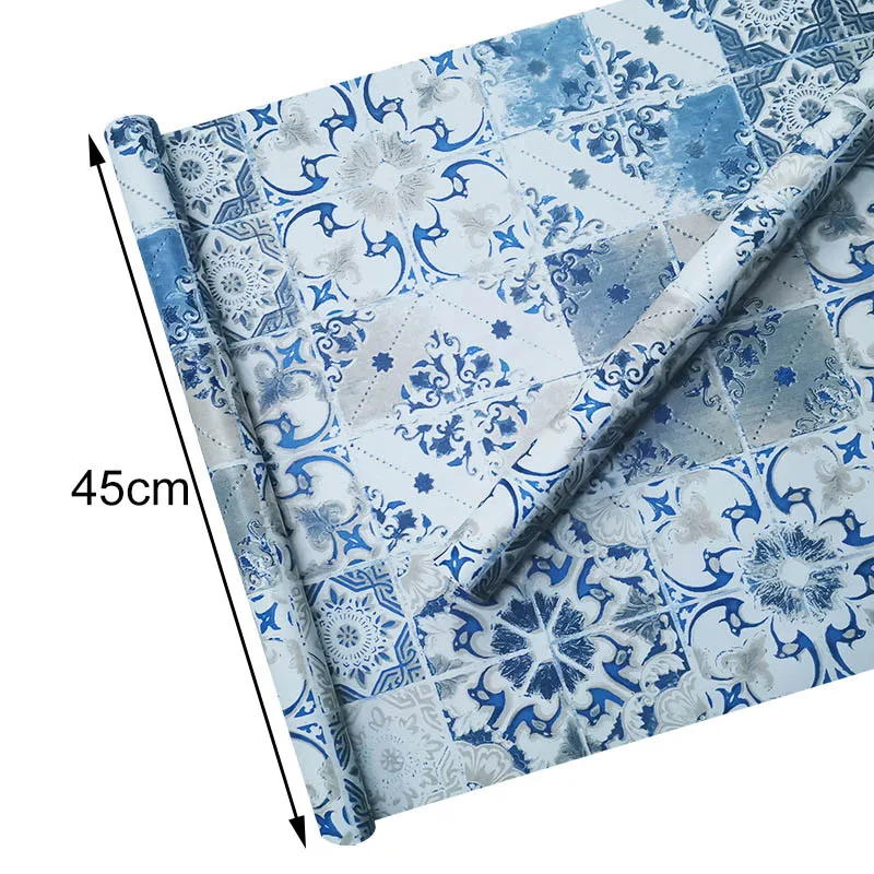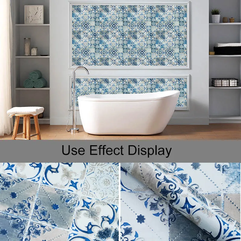 Самоклеющиеся обои, виниловые, водостойкие, синие, с мозаичным узором