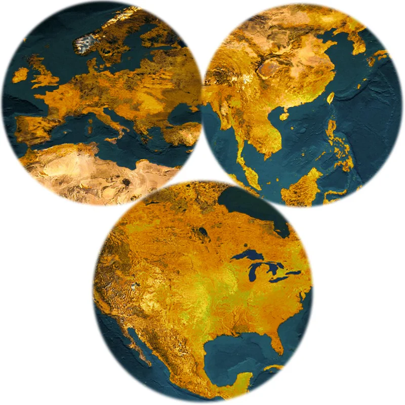 Картины на холсте с изображением золотой карты мира, настенные карт...