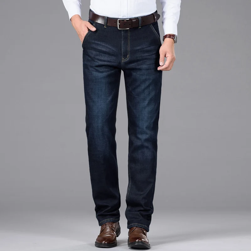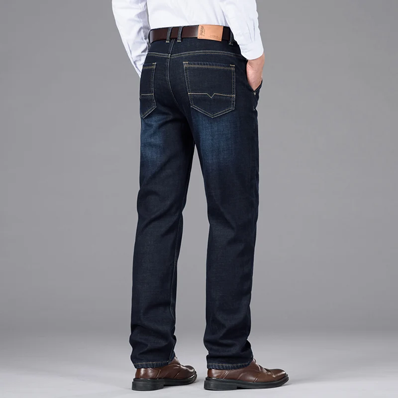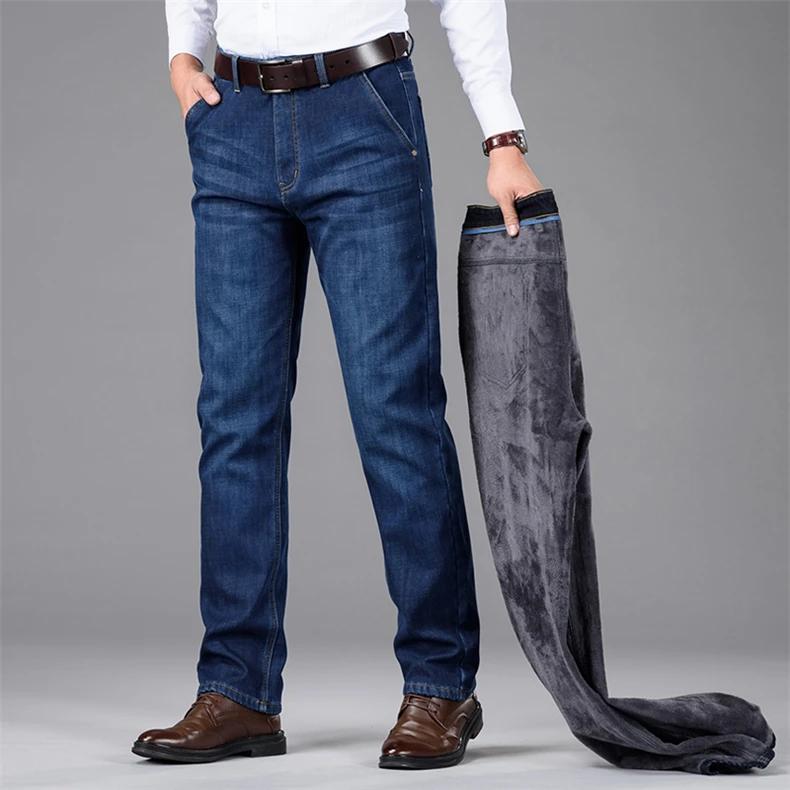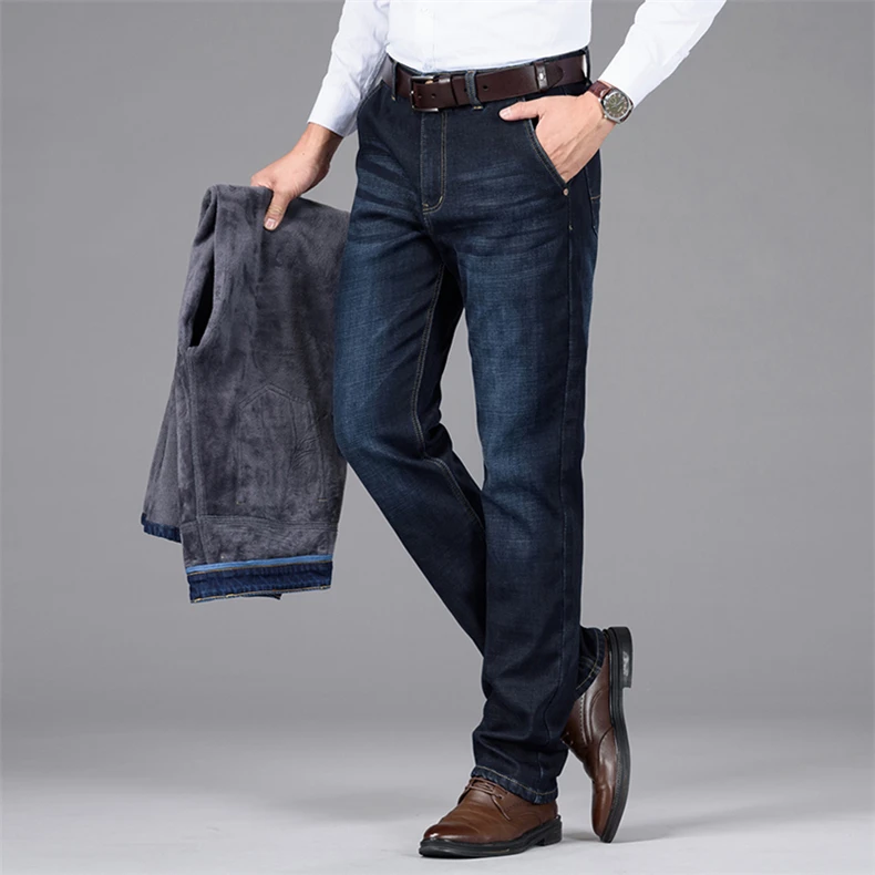Зимние брендовые флисовые толстые теплые прямые свободные джинсы SHAN BAO классический стиль высококачественные мужские повседневные джинсы с высокой талией