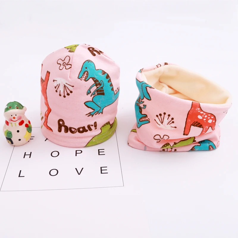 Новый Модный зимний комплект с шапочкой и шарфом для девочек и мальчиков, шапка для девочек и мальчиков, детские теплые шапочки с круглым вырезом, хлопковый комплект с шапочкой для малышей