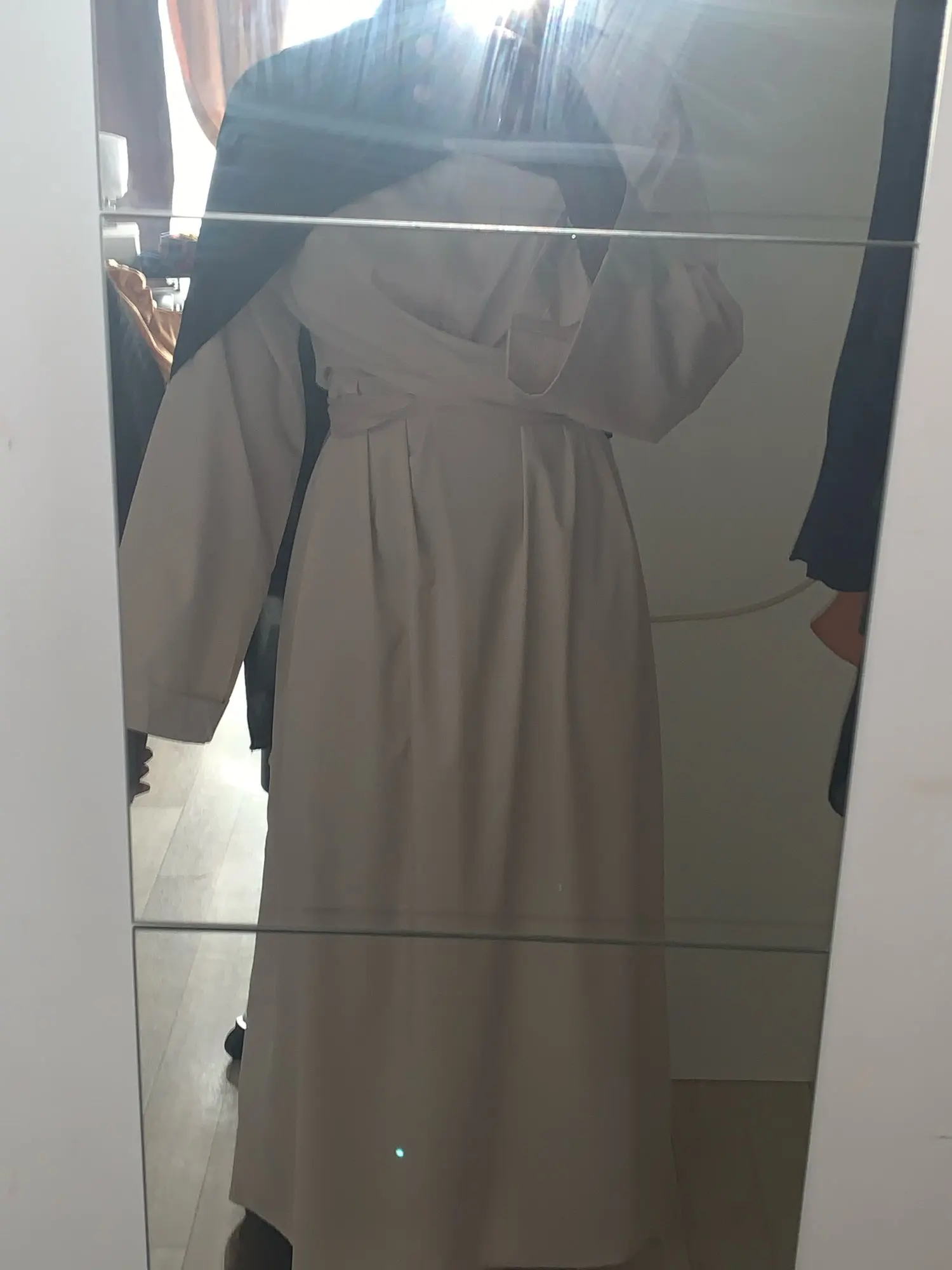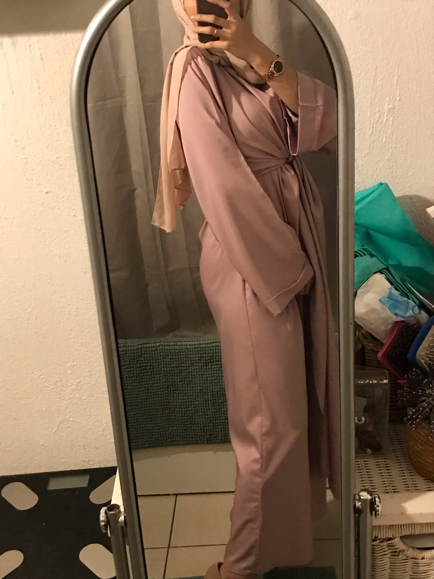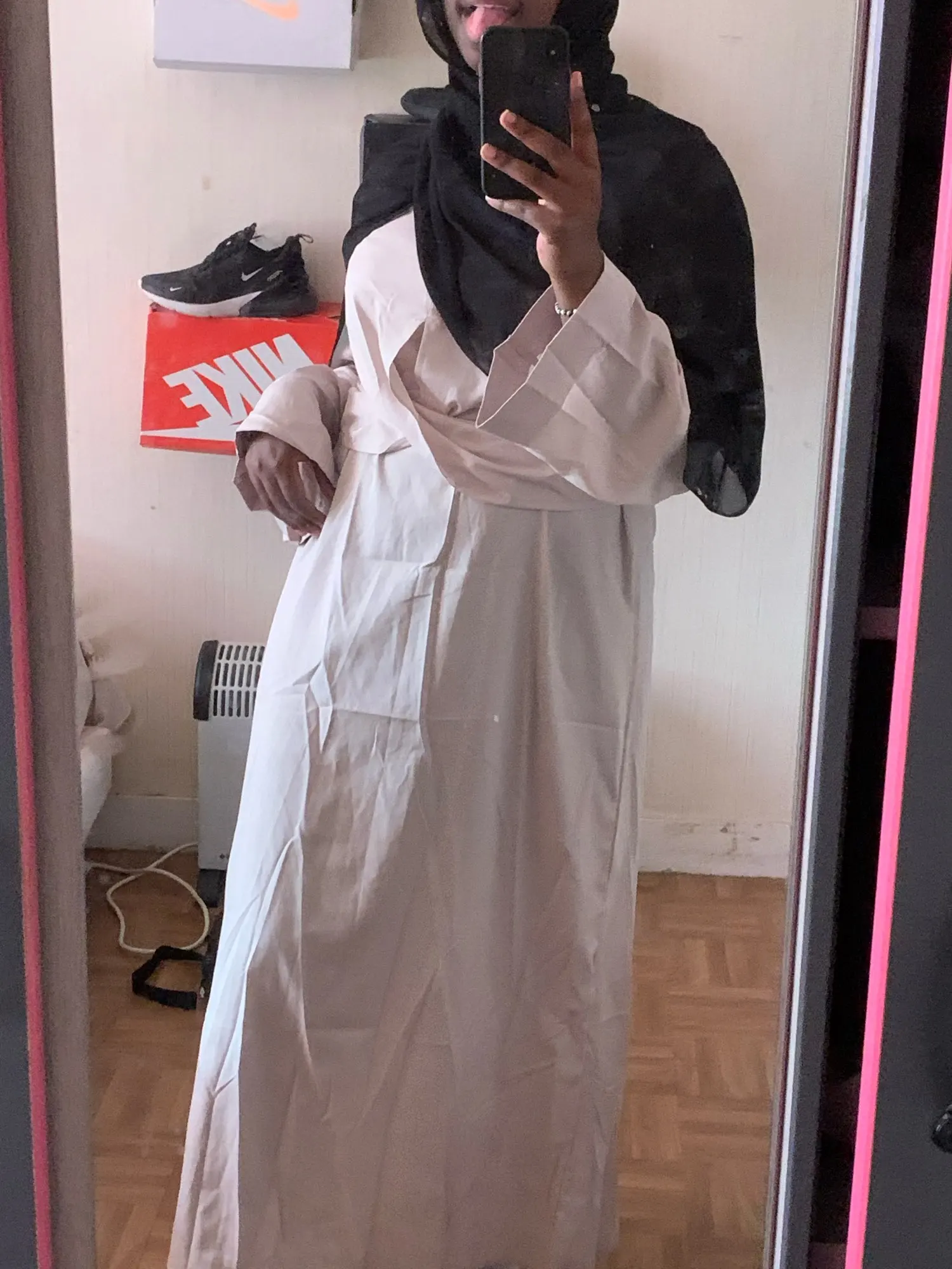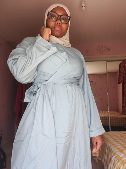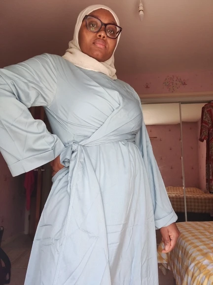 La robe est juste magnifique matière super légère, attention prendre une taille vraiment au dessus en lisant les avis j’avais pris du M je fais 1m60 je voulais que sa soit super ample mais j’aurais dû prendre du L en fin de compte mais j’aime beaucoup la robe
