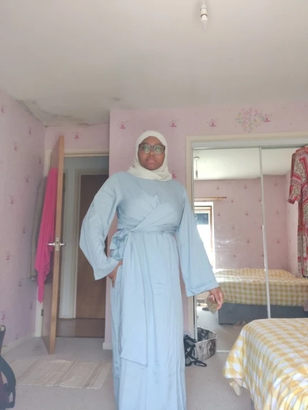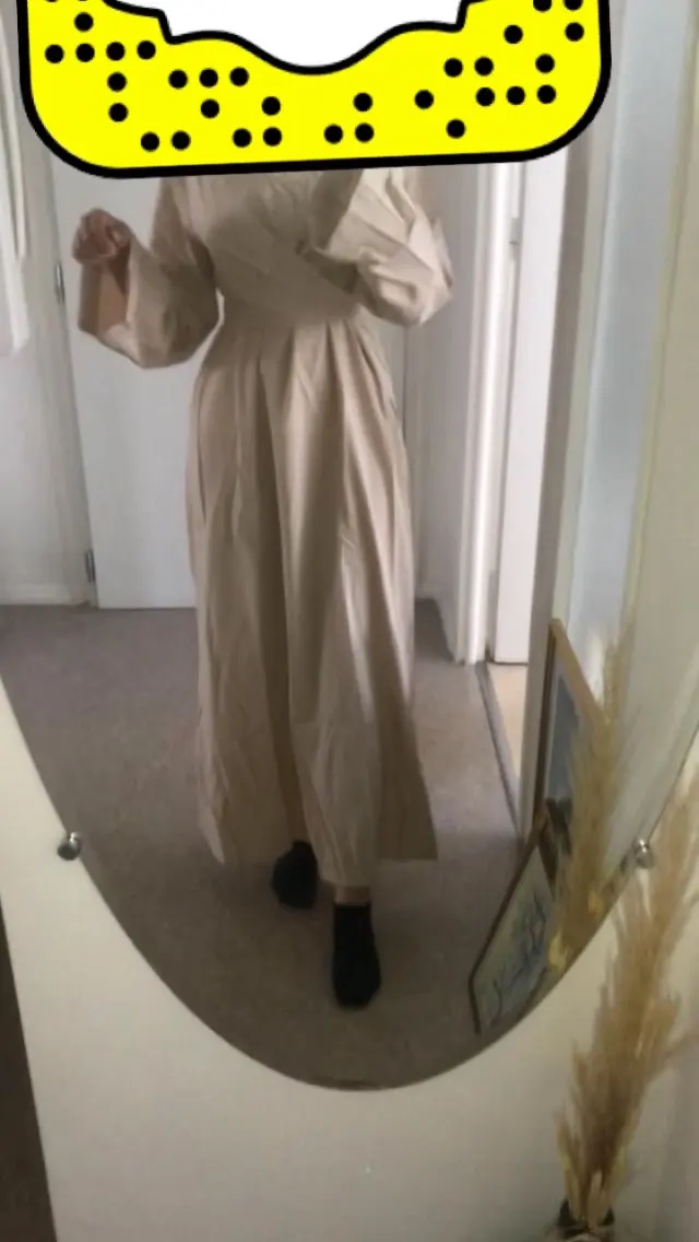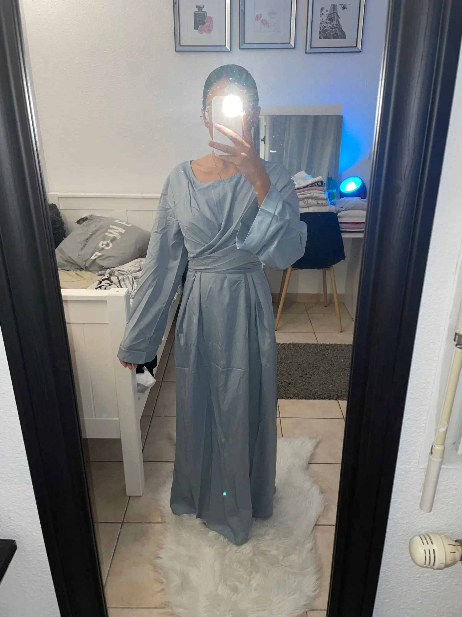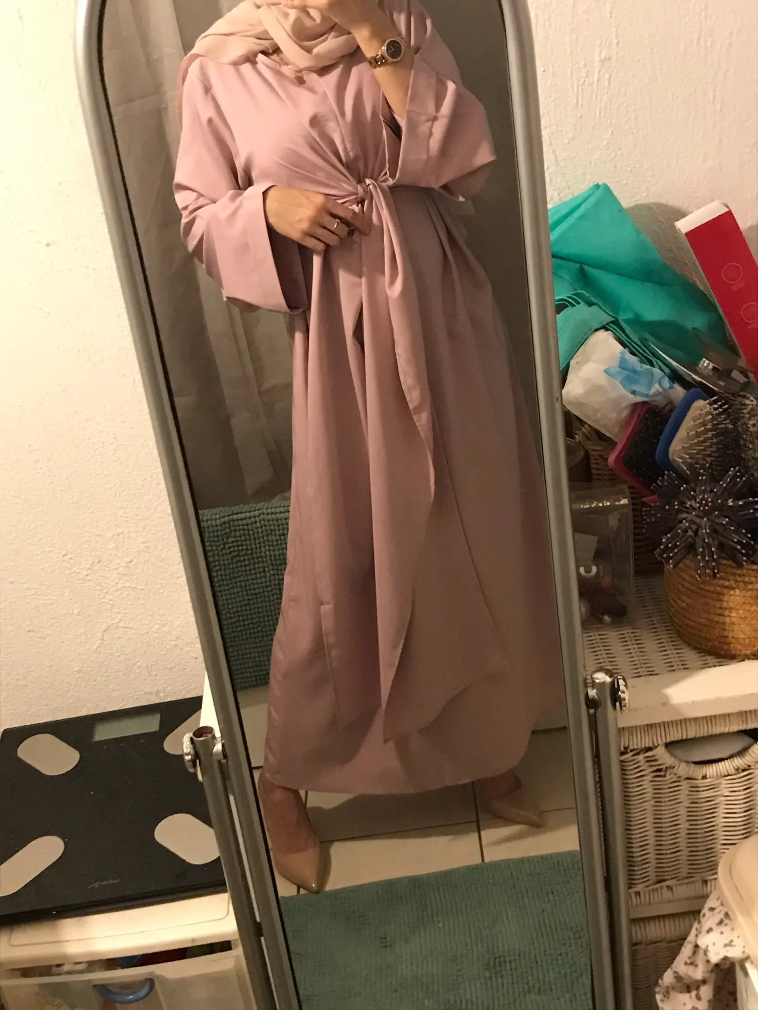 La robe est juste magnifique matière super légère, attention prendre une taille vraiment au dessus en lisant les avis j’avais pris du M je fais 1m60 je voulais que sa soit super ample mais j’aurais dû prendre du L en fin de compte mais j’aime beaucoup la robe