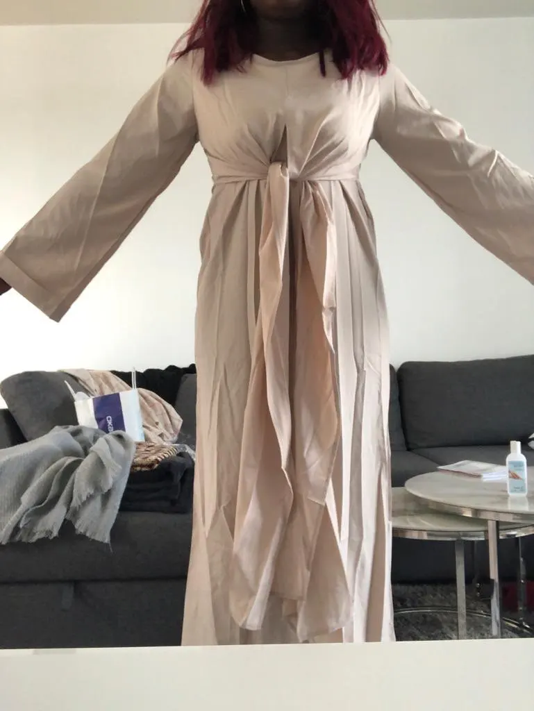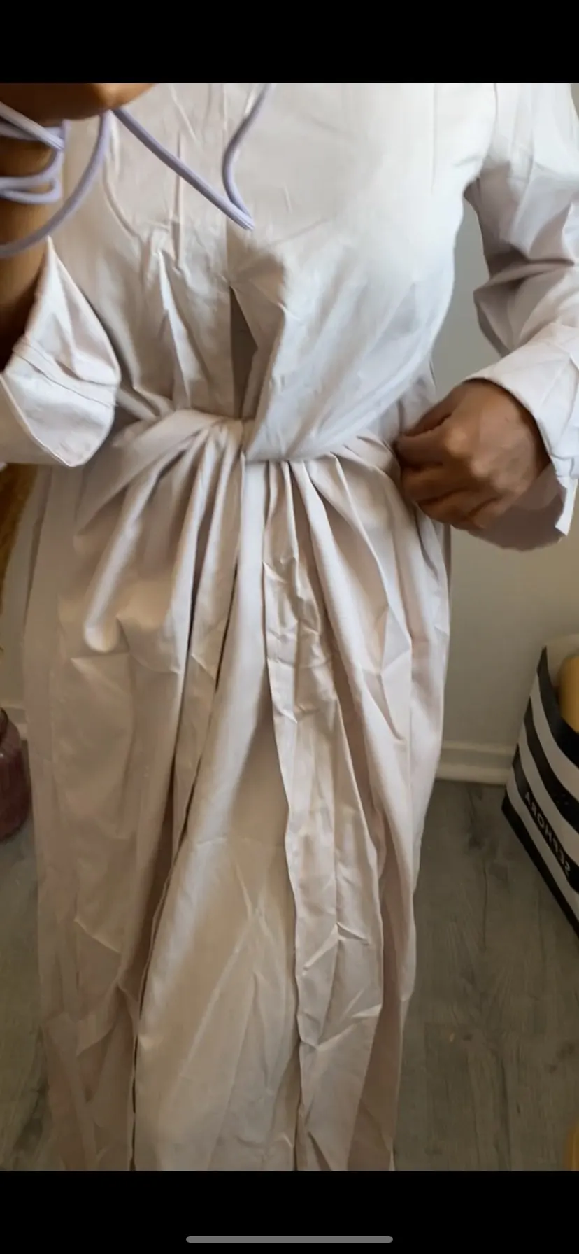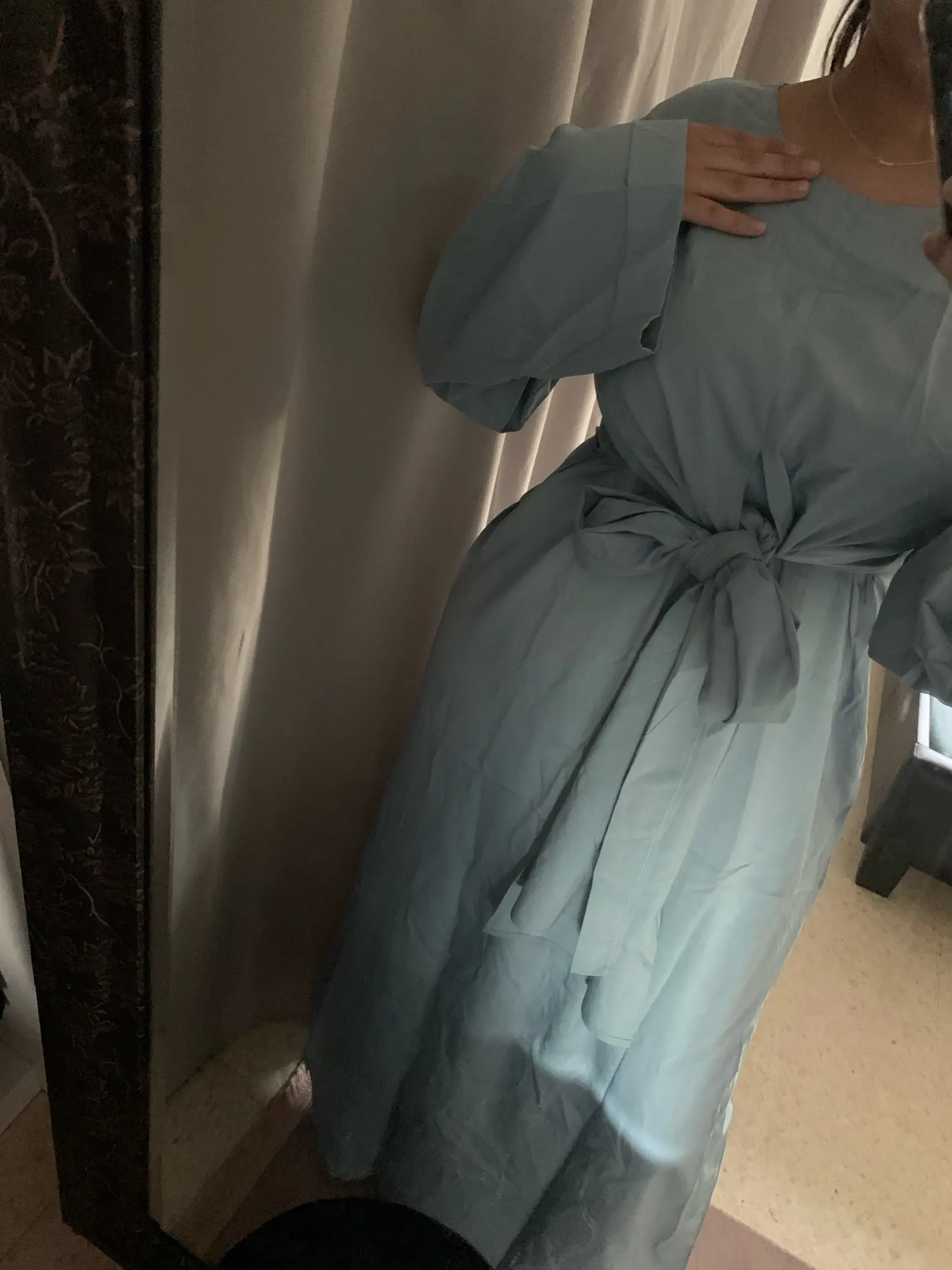 Love it. The material is really nice and hood quality. But definitely size up by 1 or 2 sizes because when u tie it the dress lifts up which makes it shorter. It doesnt matter if it is big in terms of around the body because when u tie it it will be fitted anyways so focus on getting the length right. If ur deciding between the colours i would definitely say black, baby blue gives nurse vibes, the cream is too light. Black is very elegant.
