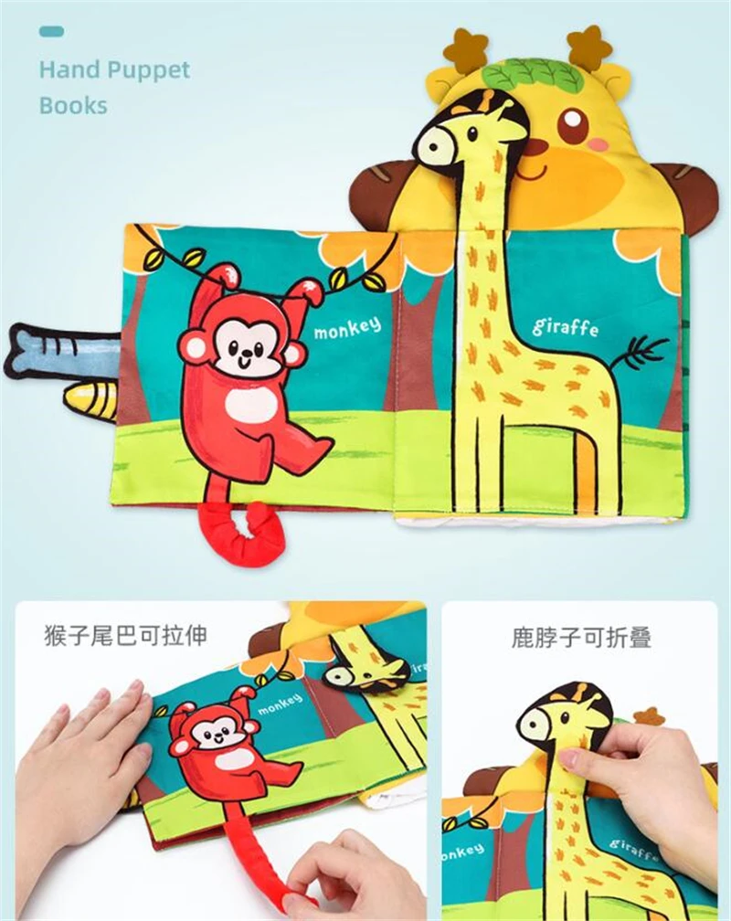Детская разноцветная тканевая книга-погремушка для младенцев 0-12 месяцев
