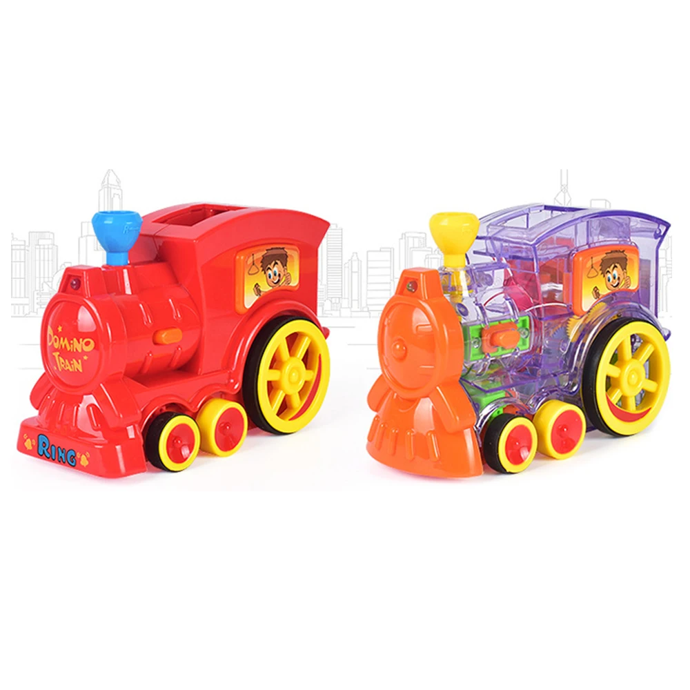 Дети домино электрический автомобиль игрушка пластиковый поезд модель с огнями и звуком