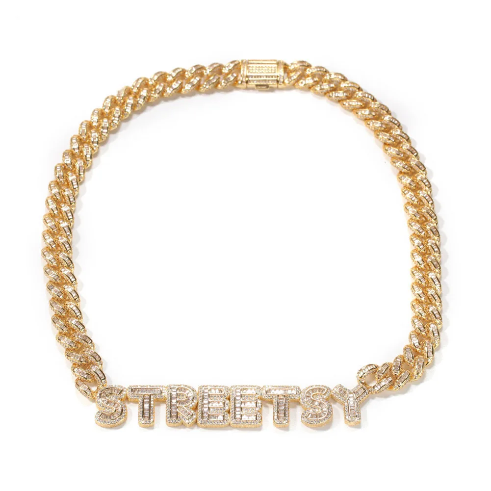 TBTK хип-хоп 13 мм кубинское звено с индивидуальным именем багет письмо ручной работы ледяной CZ кулон ожерелья для женщин лучший друг подарок