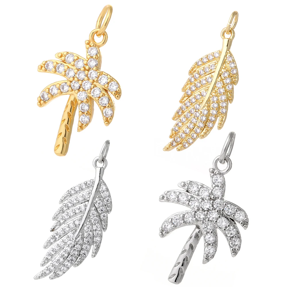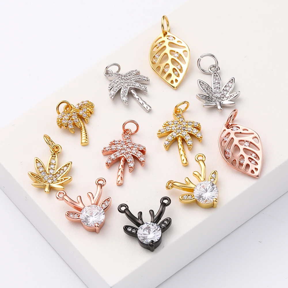 Подвески в виде дерева для изготовления ювелирных изделий, подвеска в форме золотого листа, серьги, ожерелья, металлические аксессуары, медный циркон, отверстие 5 мм
