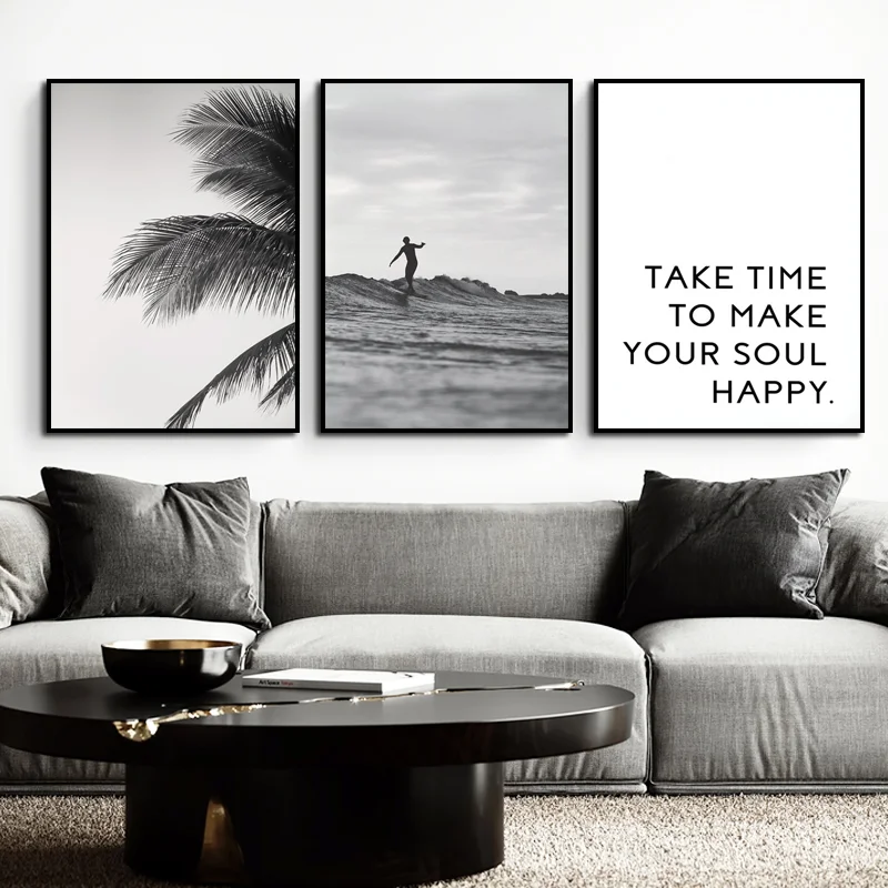 Экзотические пейзажи серое небо чайки летающие пальмы океан Большая Картина на холсте Настенная картина плакат украшение для гостиной
