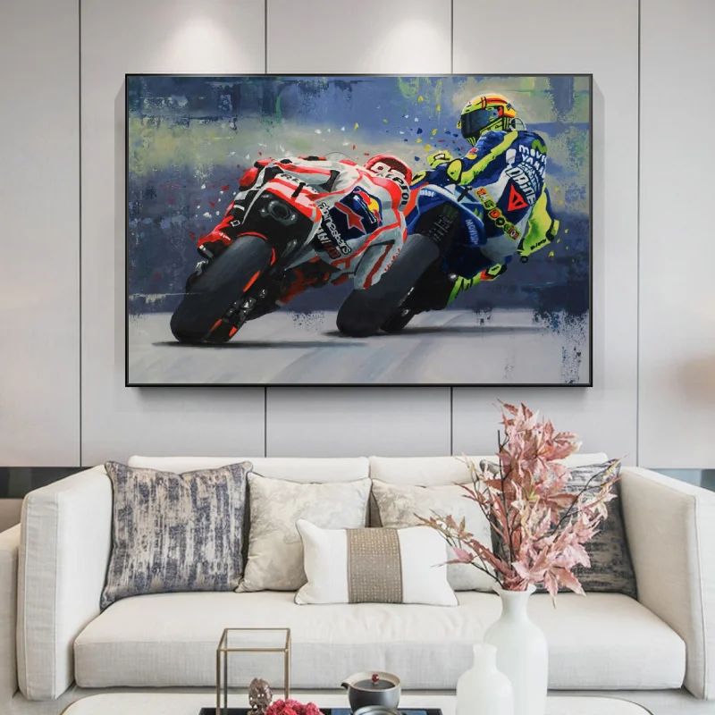 Абстрактный мотоцикл Холст Плакаты и печать современного настенного искусства Grand Prix мотоцикл картинки с гонками для дома Декор для гостиной