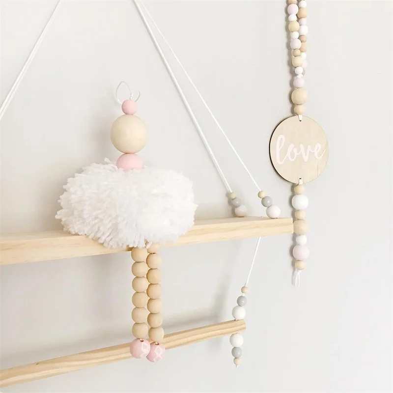 Подвесное украшение для девочек, балерина, деревянные бусины, игрушка для настенной полки, украшение для детской комнаты, реквизит для фотографии