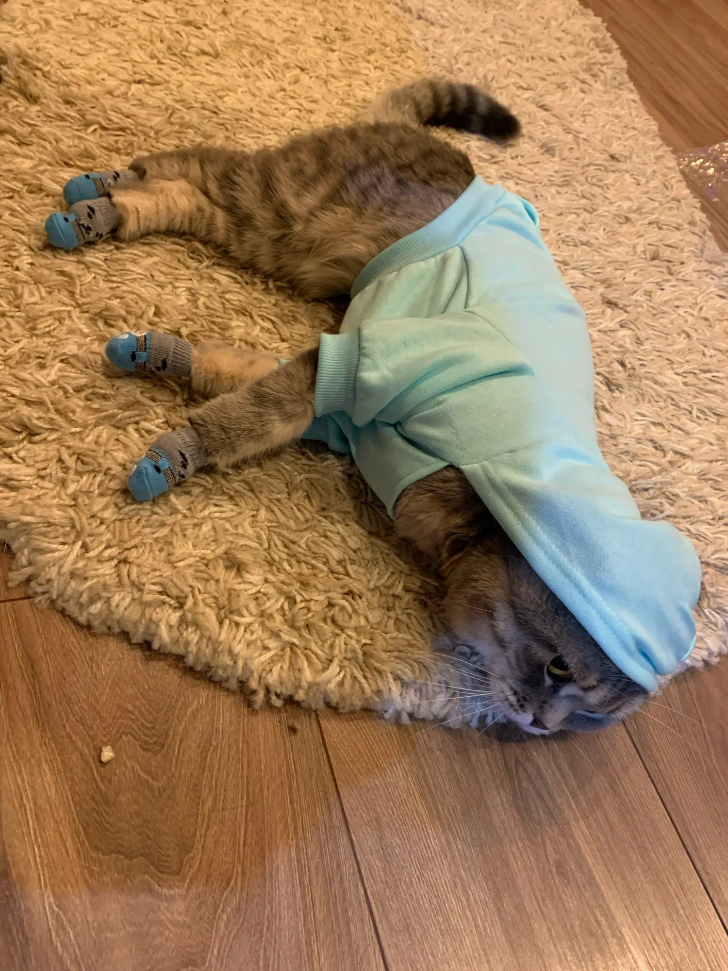 Носки хорошие, однако слетают с кота очень быстро, но всё же весело.