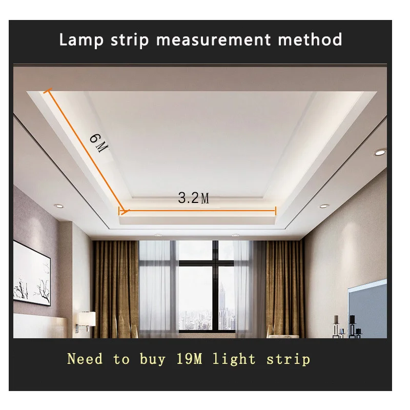 Например: длина светильник корыта составляет 6 м, ширина-3,2 м, а светильник полосы должен идти вокруг светильник корыта один раз, то есть (6 + 3,2) * 2 = 18,4 м