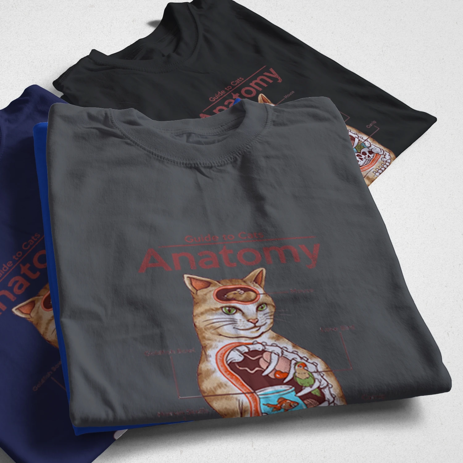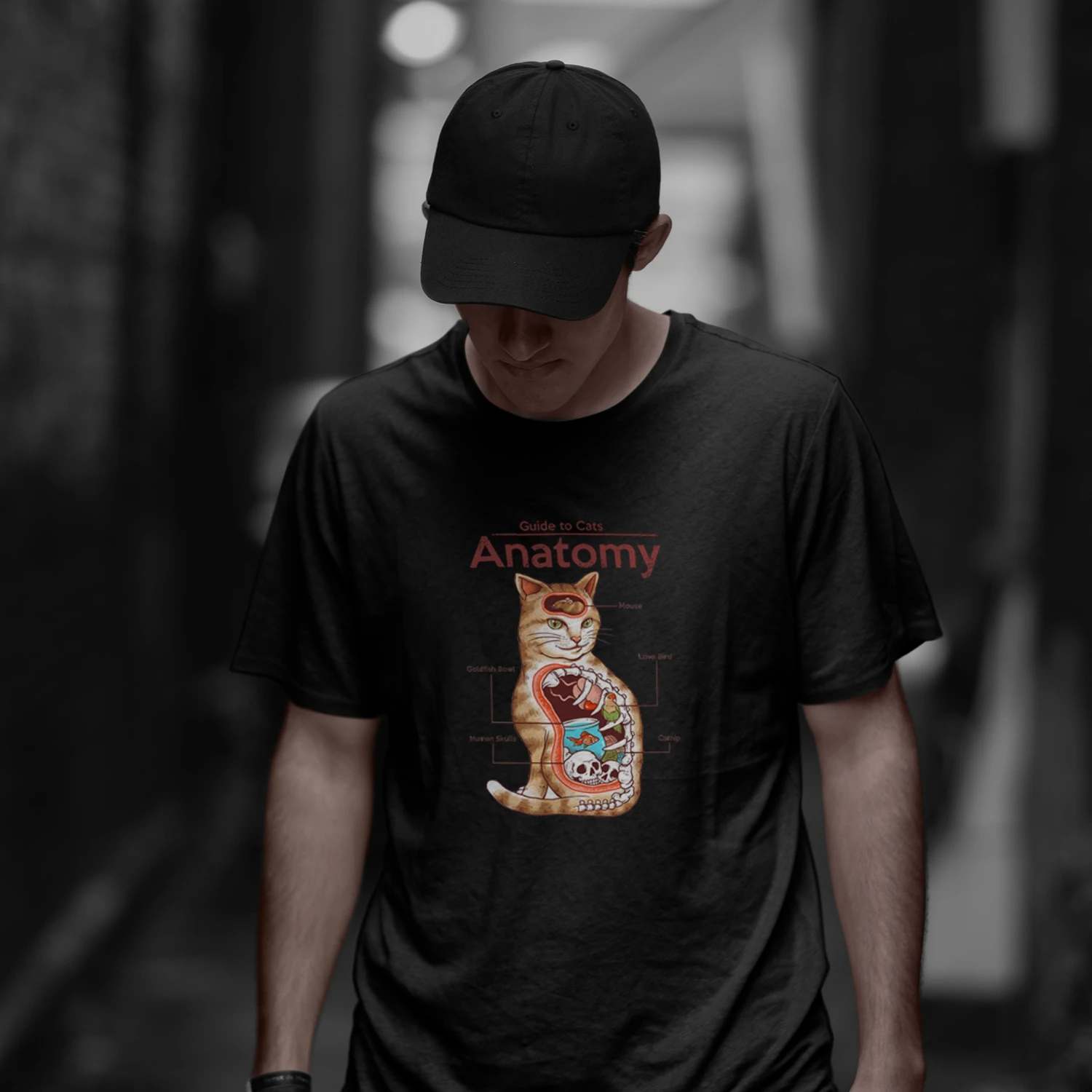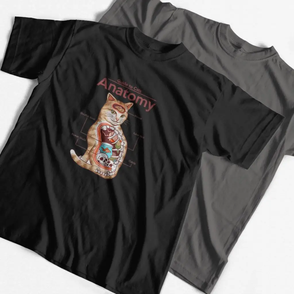 Мужская футболка COOLMIND, Повседневная Свободная футболка из 100% хлопка с коротким рукавом и принтом «Анатомия кота», крутая футболка с круглым вырезом, мужские футболки, топы