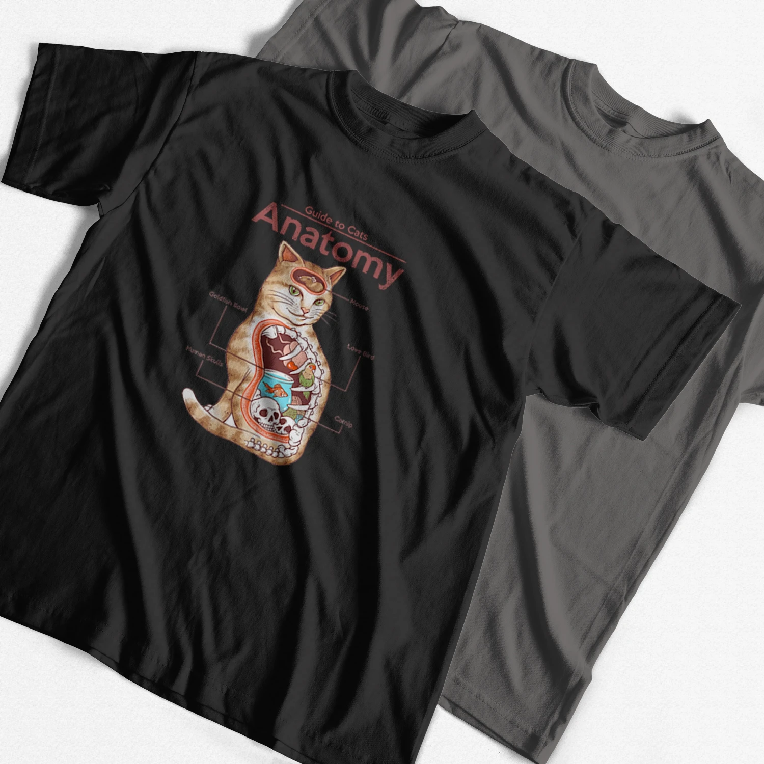 Мужская футболка COOLMIND из 100% хлопка с коротким рукавом и принтом анатомии кошки, Повседневная Свободная Мужская футболка, крутая футболка с круглым вырезом, мужские футболки, топы