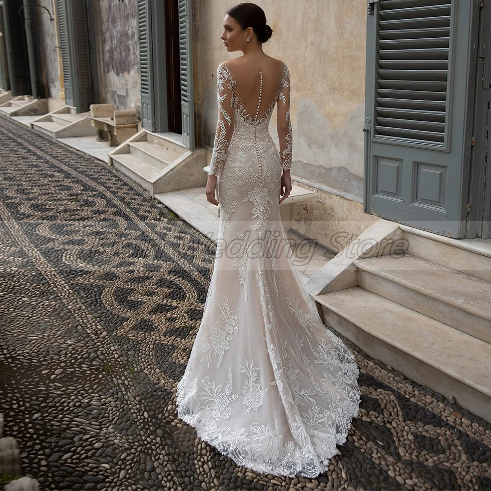 кружева для платьев свадебное платье для барби Элегантные кружевные свадебные платья с вышивкой, соблазнительные Свадебные платья с V-образным вырезом и длинным рукавом, со шлейфом и юбкой-годе, свадебные платья с