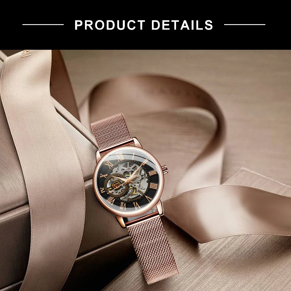 Часы наручные FORSINING женские с сетчатым ремешком, брендовые роскошные в стиле ретро, повседневные Элегантные золотистые