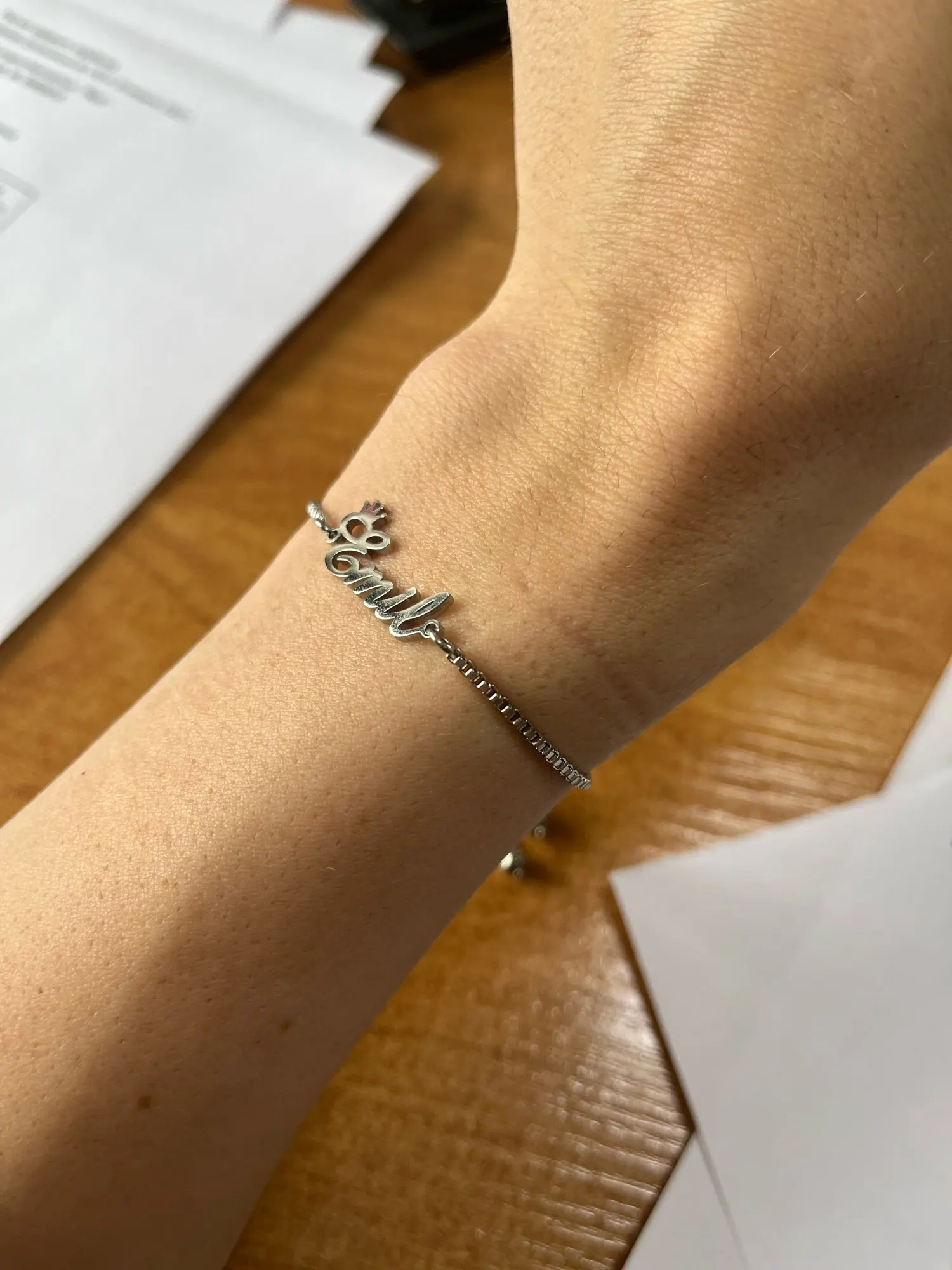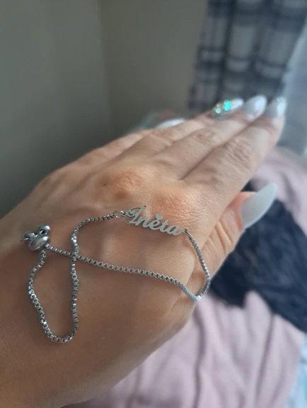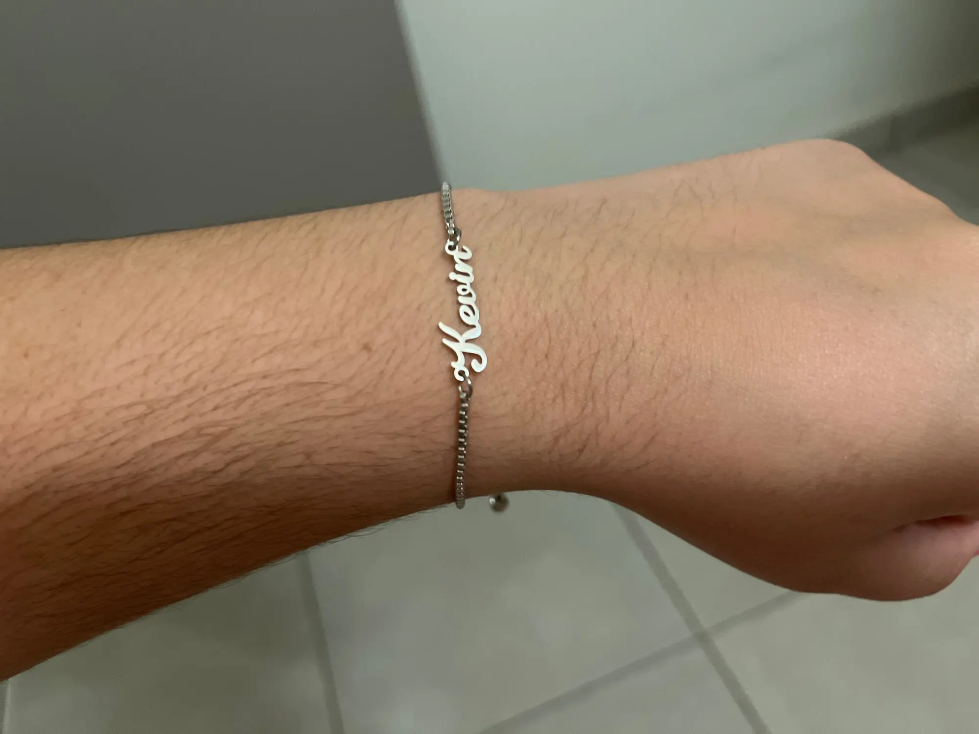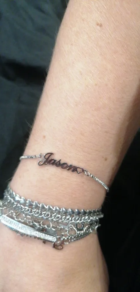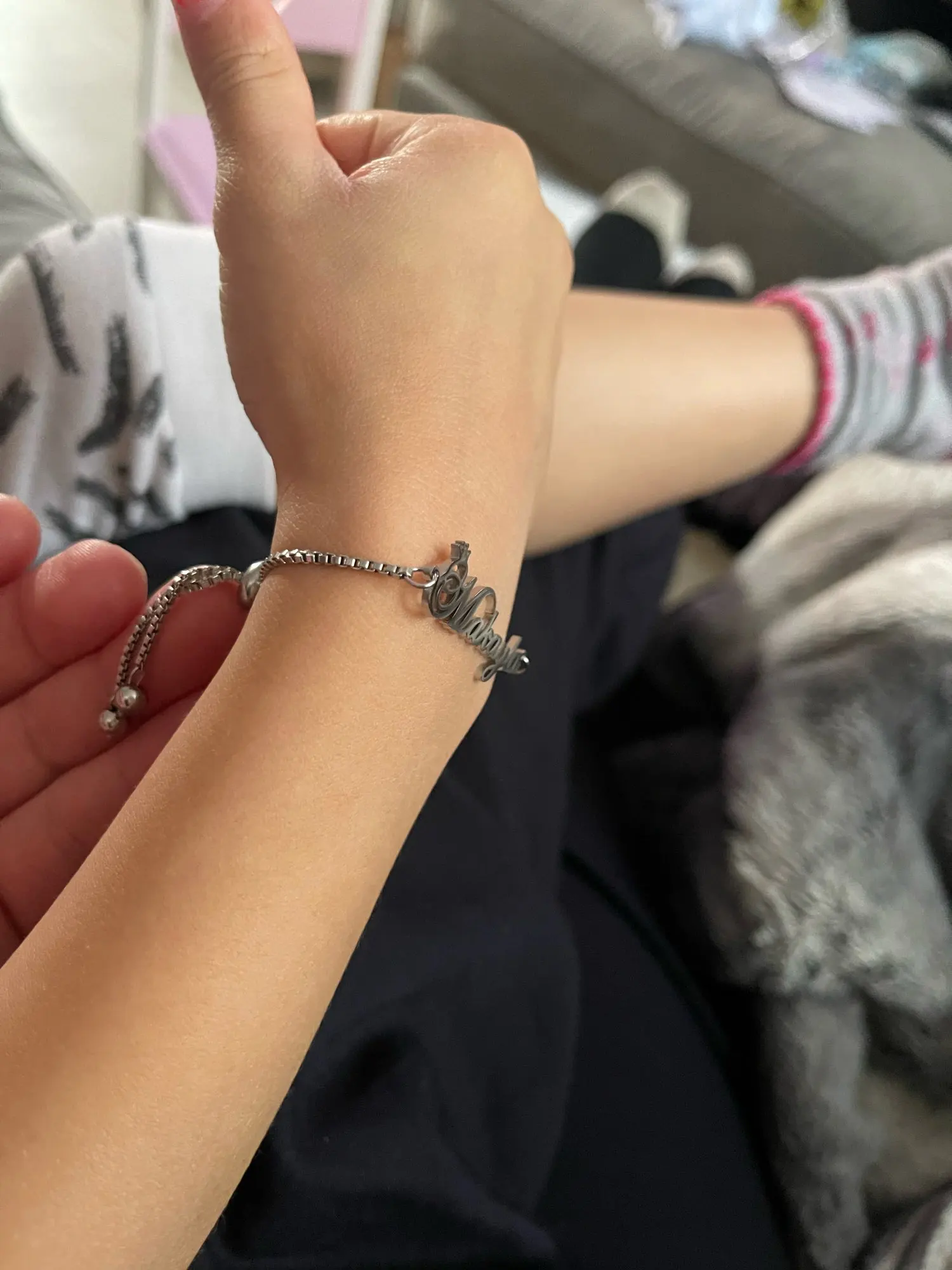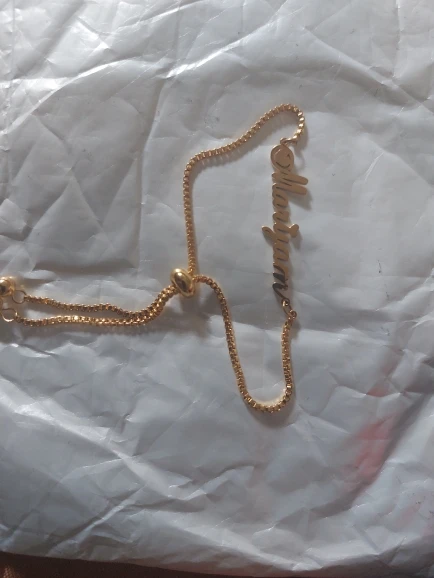 Красивое имя на браслете. Моя единственная жалоба в том, что цепь коробки не легко Потяните, чтобы открыть или закрыть. Бойтесь, что он сломается задолго. Надеюсь, нет.