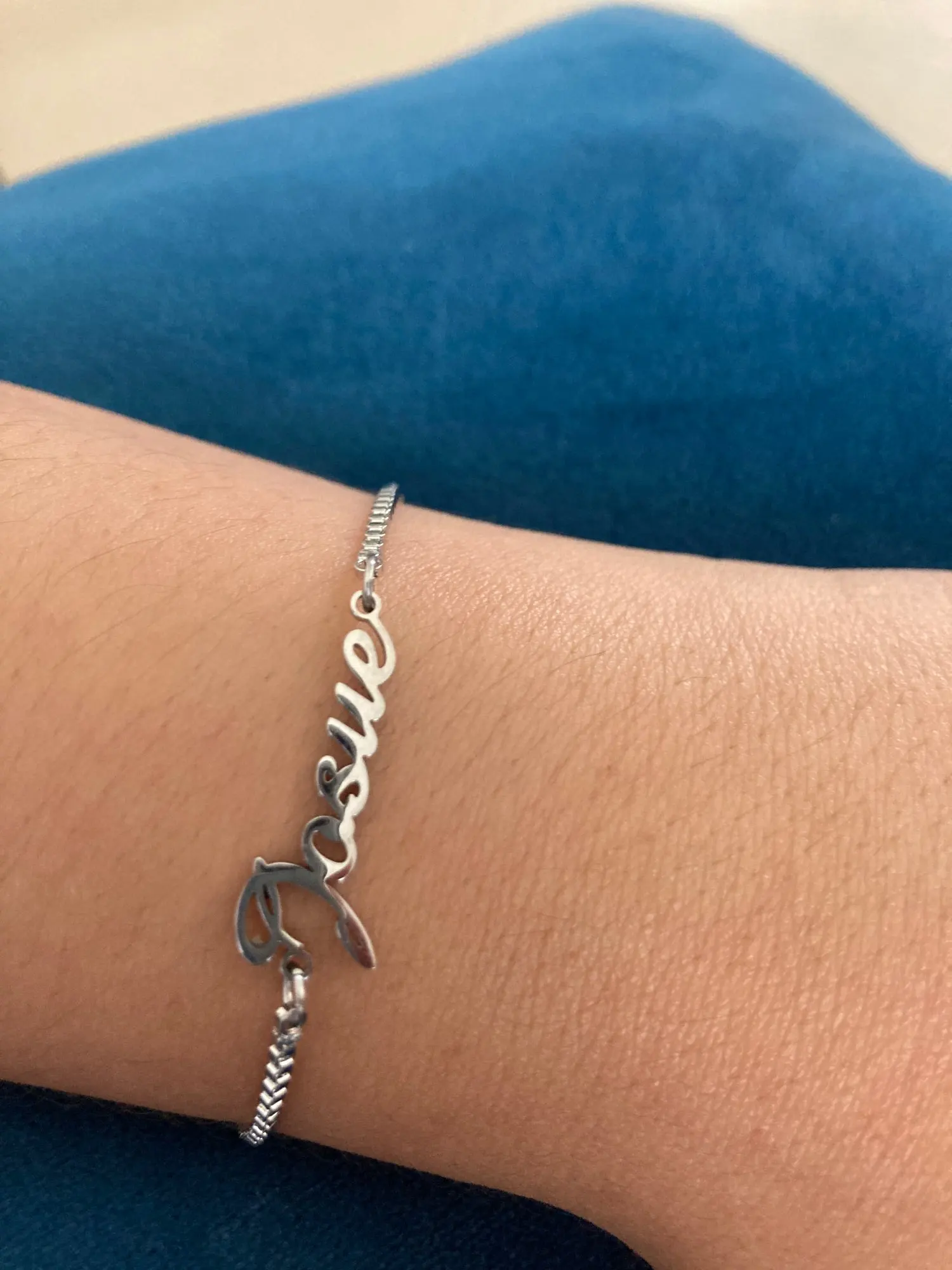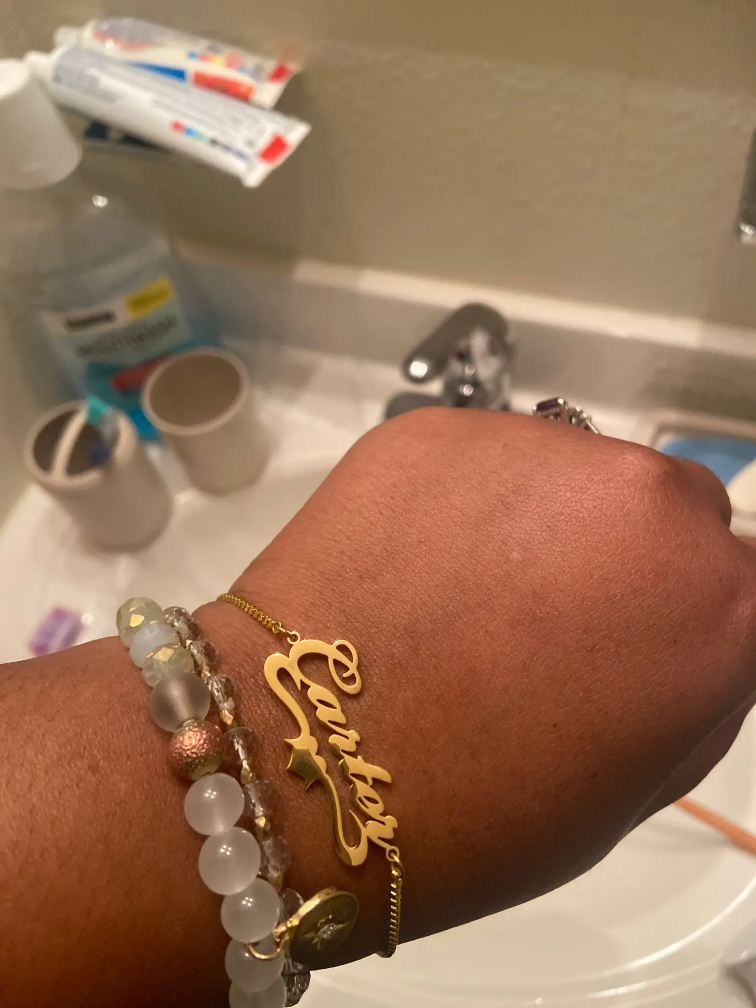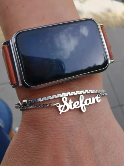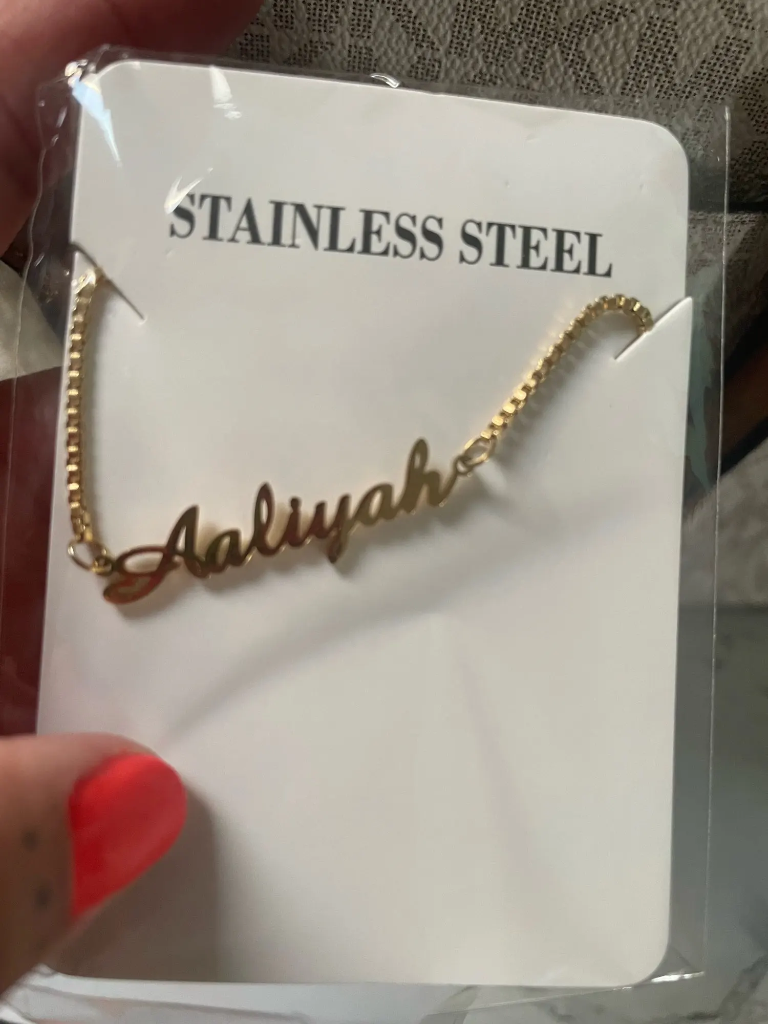 Красивое имя на браслете. Моя единственная жалоба в том, что цепь коробки не легко Потяните, чтобы открыть или закрыть. Бойтесь, что он сломается задолго. Надеюсь, нет.