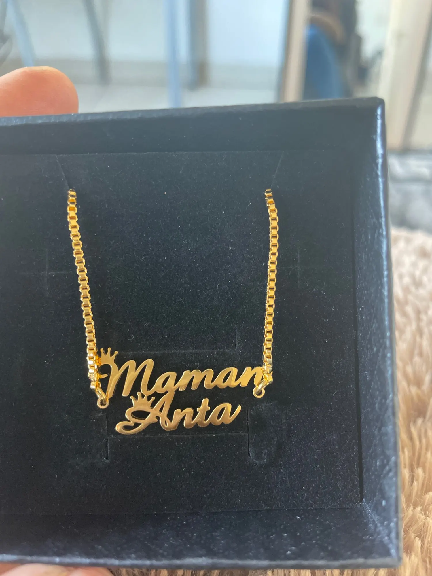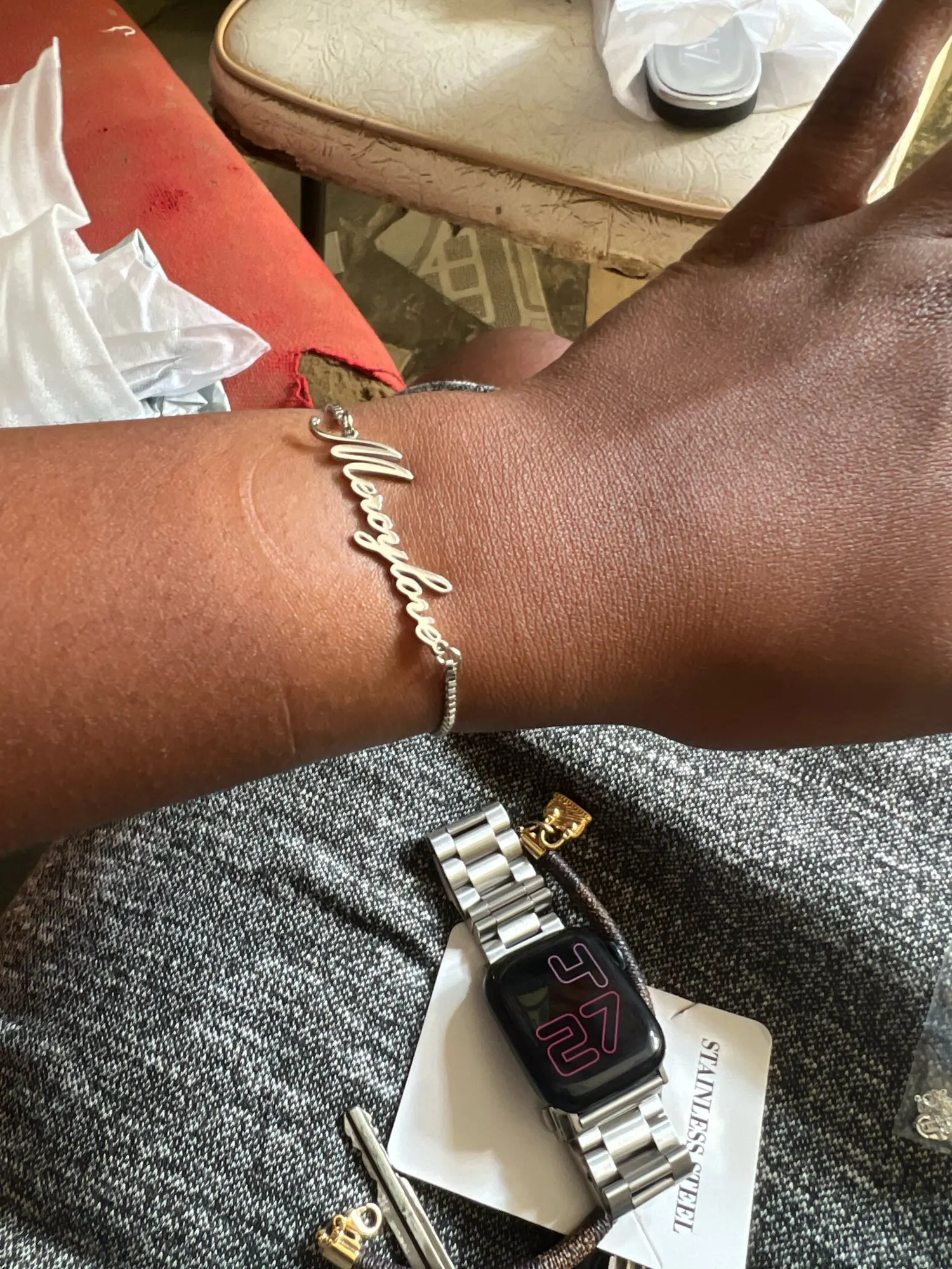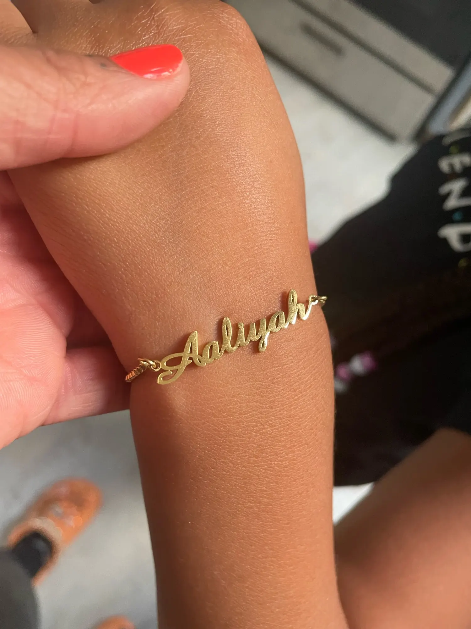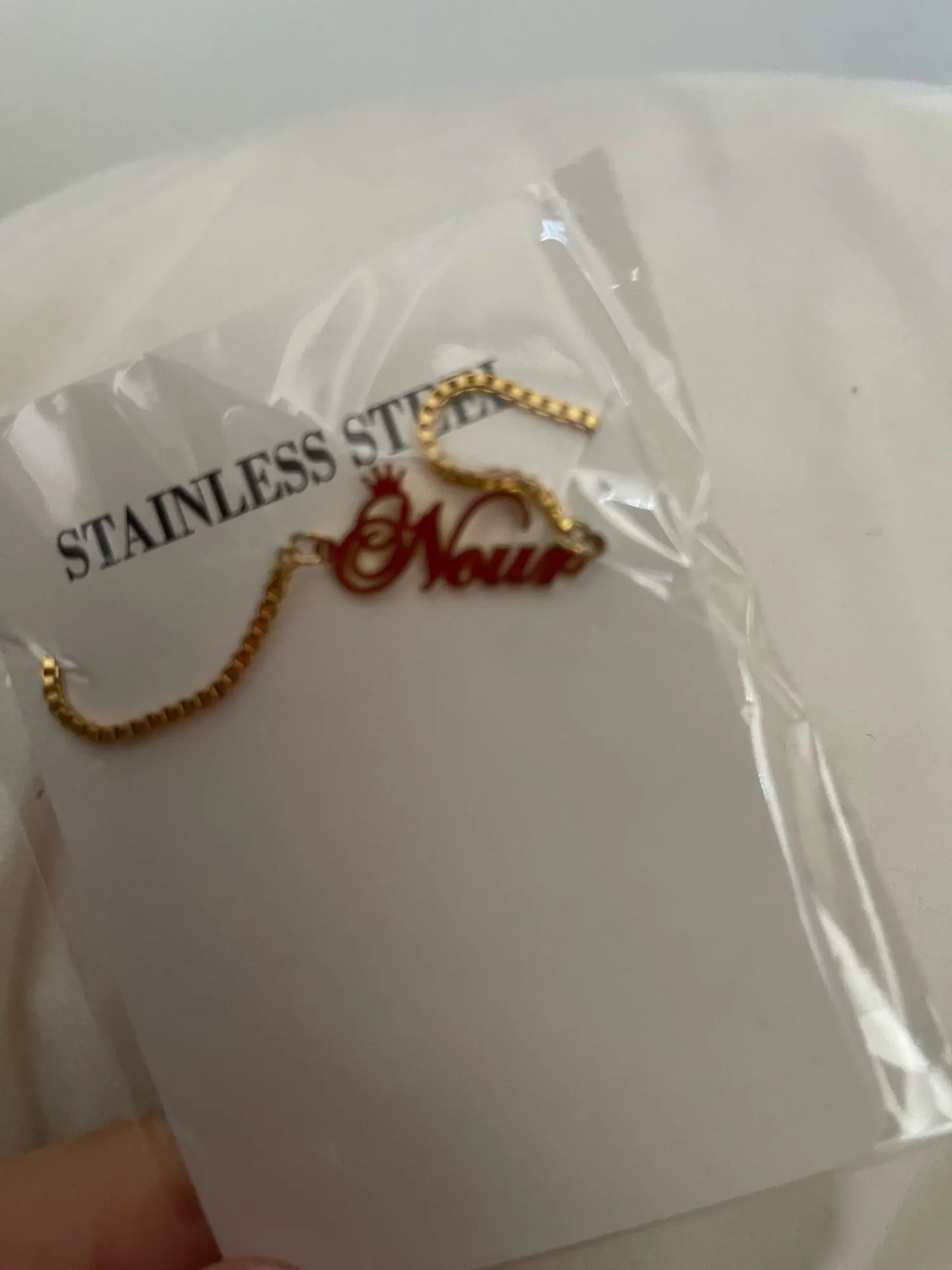 Красивое имя на браслете. Моя единственная жалоба в том, что цепь коробки не легко Потяните, чтобы открыть или закрыть. Бойтесь, что он сломается задолго. Надеюсь, нет.