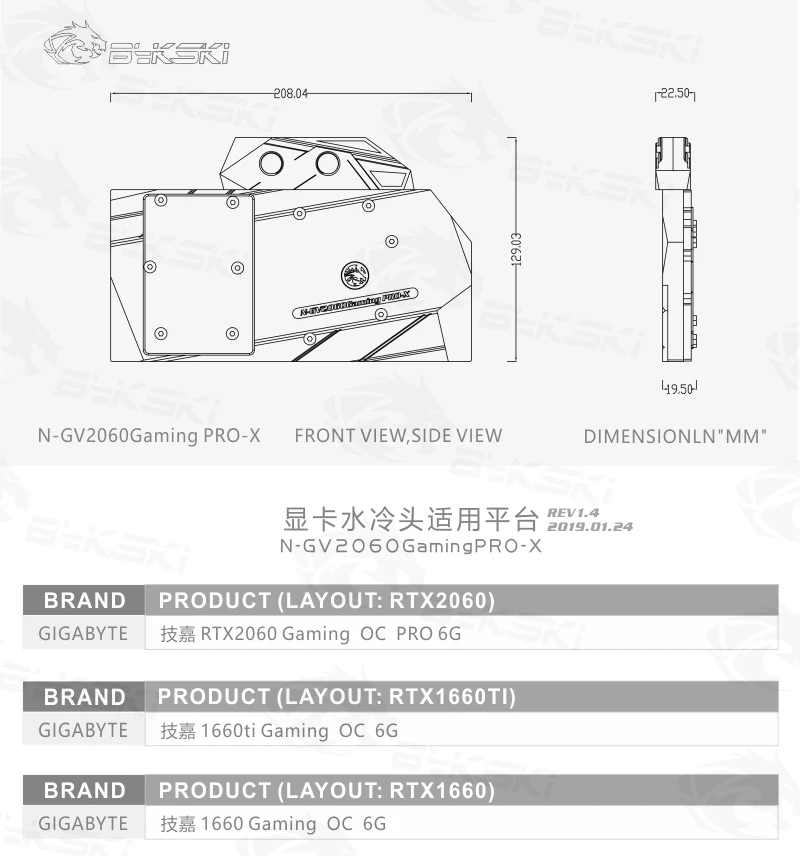 Блок видеокарты BYKSKI с полным покрытием для Gigabyte RTX2060 Gami...
