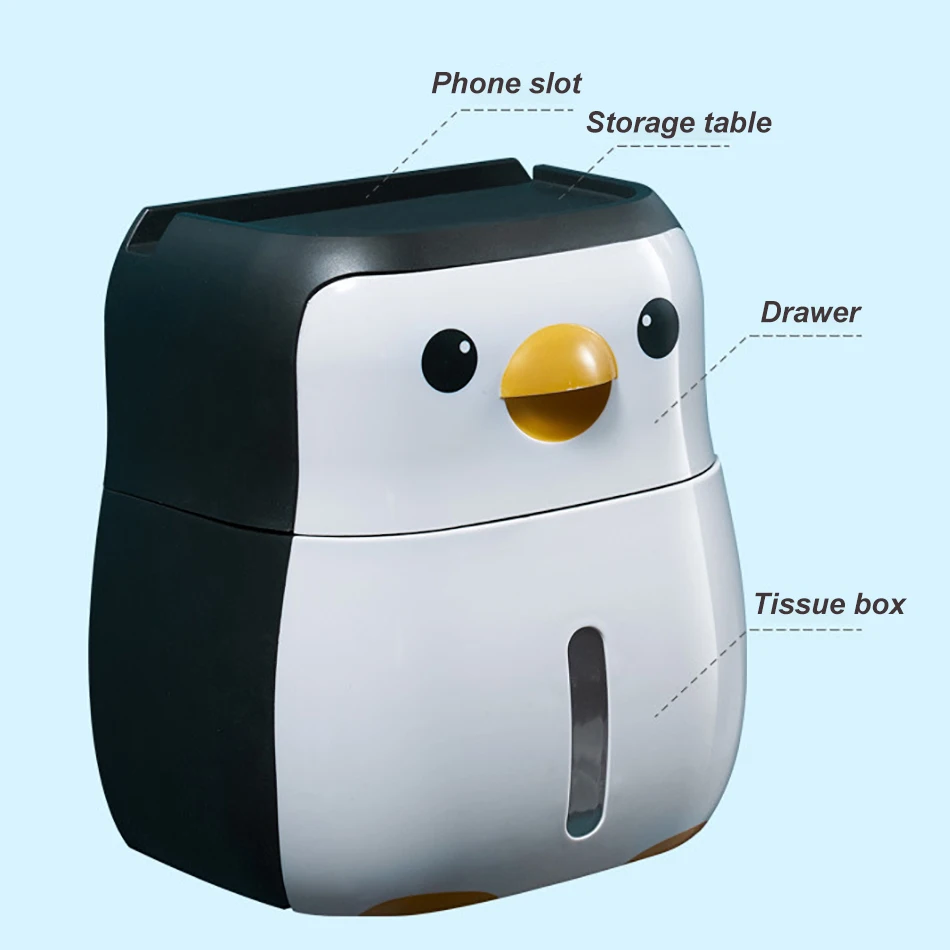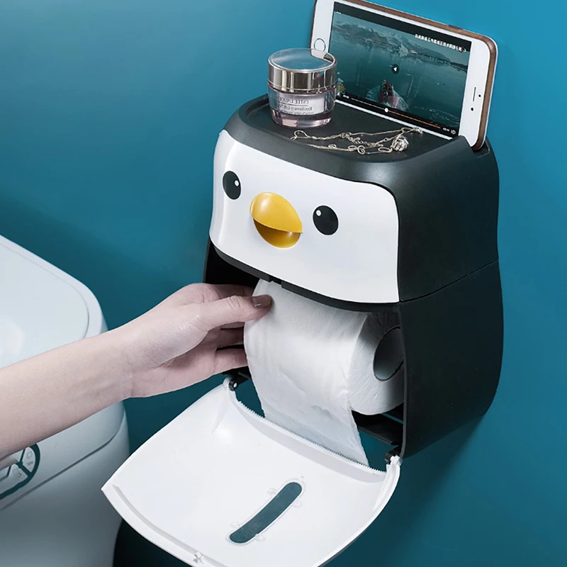Портативный держатель для туалетной бумаги с пингвином, настенный рулон бумаги, полка, набор аксессуаров для ванной комнаты, водонепроницаемое хранение