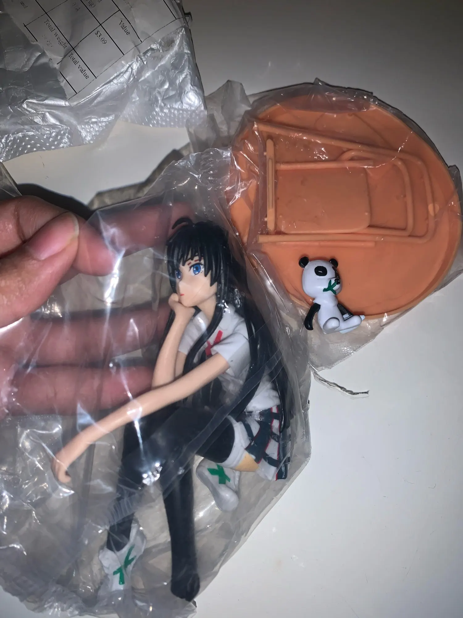 фигурка очень красивая. Стульчик не такой, как на фото, что общего плана не меняет. есть небольшие косячки по литья, но не критично. Упаковка в мягкой пленке, ничего не сломалось. ехала три недели. цена сейчас уже дешевле. в общем, рекомендую.