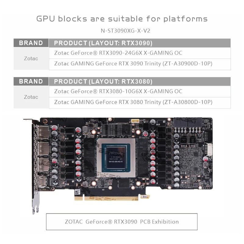 Блок водяного охлаждения Bykski для ZOTAC RTX30903080 GAMING OC, охладитель жидкости для видеокарты, N-ST3090XG-X-V2