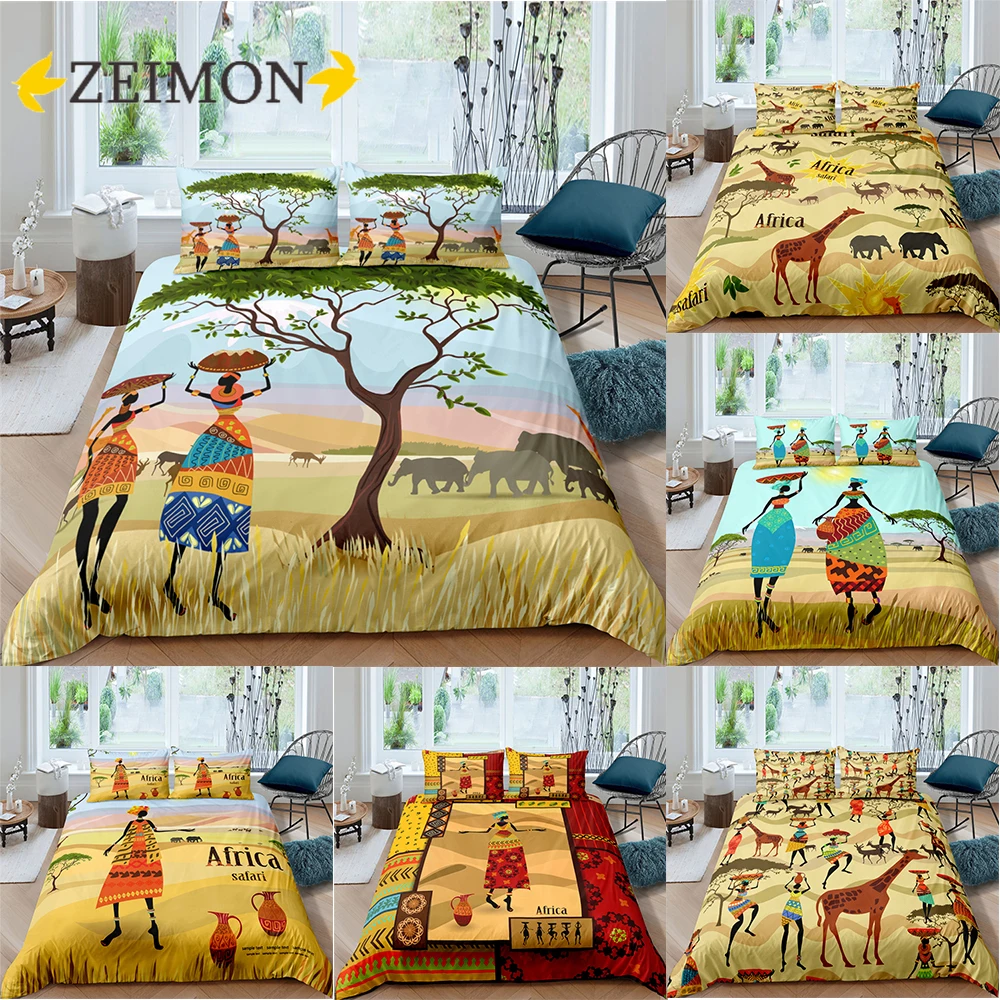 Пододеяльник ZEIMON с Африканским принтом и наволочкой, покрывало с...