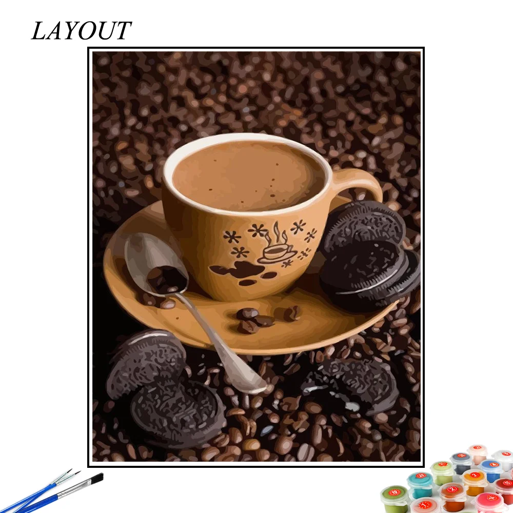 HUACAN раскраска по номеру кофе Картина маслом искусство подарок DIY фотографии по номеру чашки комплекты, украшение для дома