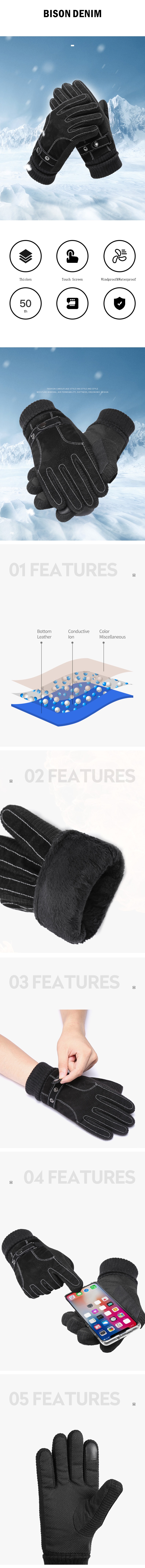 Мужские перчатки BISON DENIM, плотные ветрозащитные теплые зимние перчатки с сенсорным экраном, модные перчатки для мужчин S053