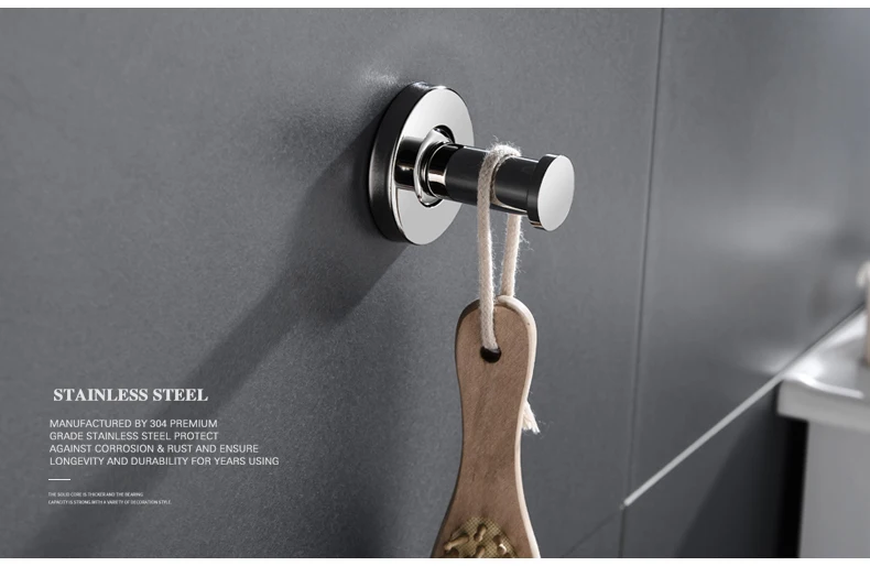 Особенности и характеристики:Крючок для полотенца/Крючок для халата/вешалка для халата/крючок для шляпы/дверной крючокМатериал: Прочная нержавеющая сталь SUS 304Использование: ванная комната/душевая комната/туалет/кухняОтделка: хромТип: аксессуары для ванной комнатыУстановка: НастенныйВключая все монтажные фитинги