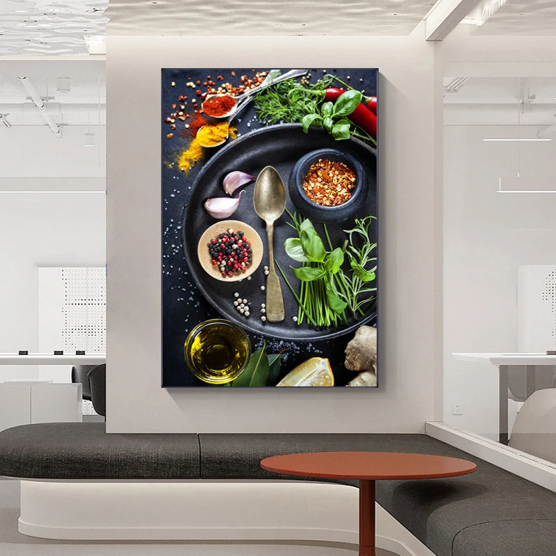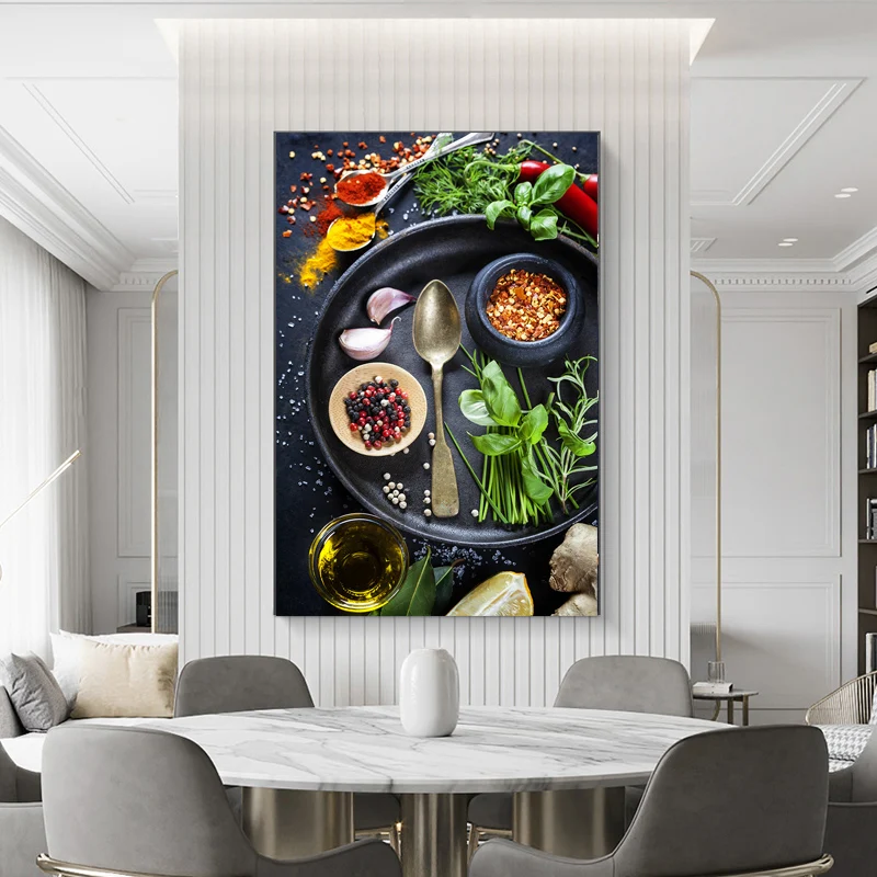 Скандинавский домашний декор, холст, картина, зерна, ложка для специй, перцы, кухня, художественные плакаты, печать, настенная живопись, Современная еда, куадросы, картина
