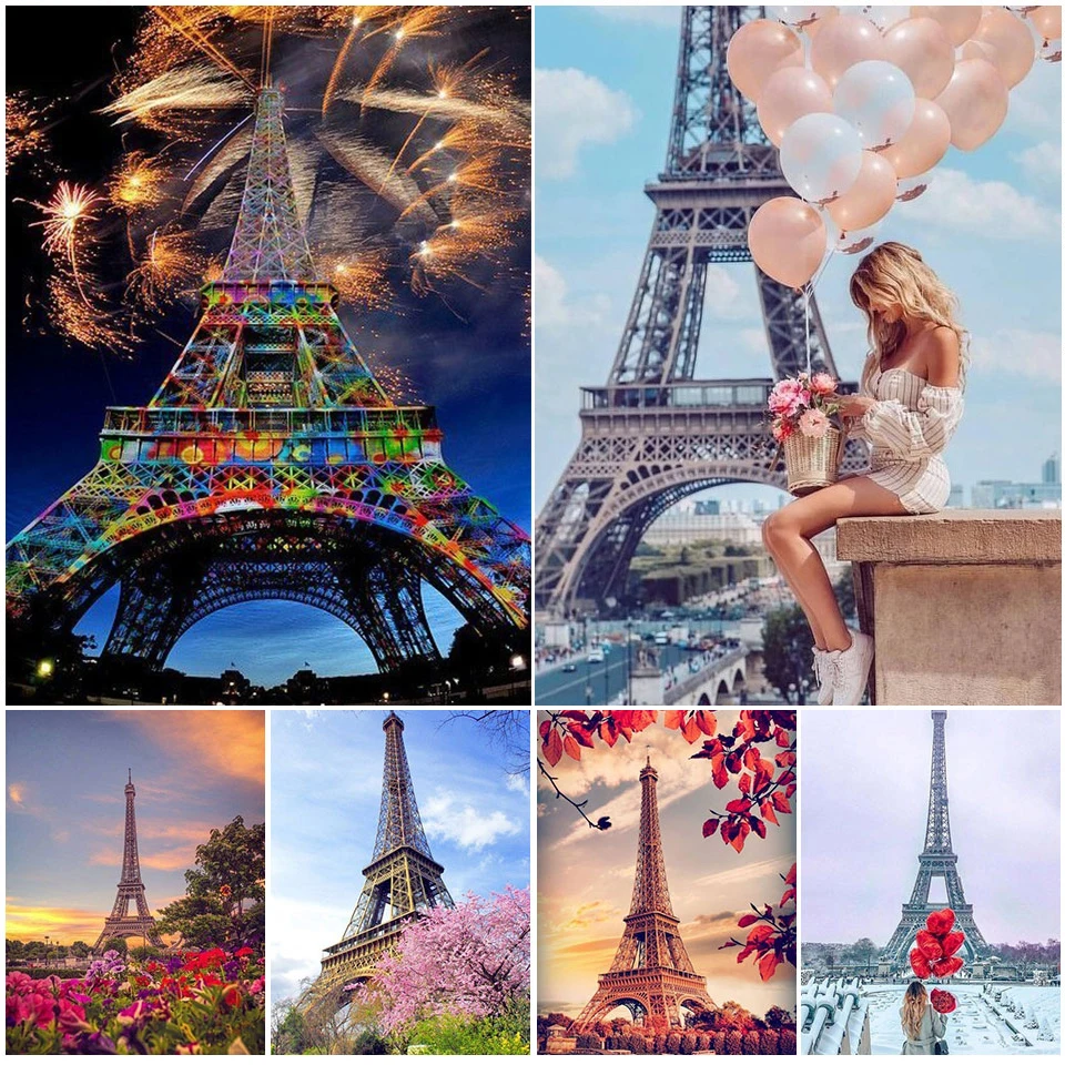 5D алмазная живопись сделай сам, полноразмерная вышивка с Парижской башней, вышивка крестиком, картина из Бриллиантовая мозаика пейзаж, декор Стразы