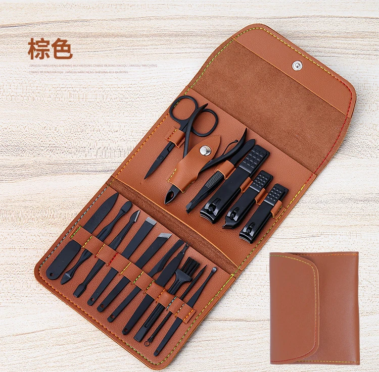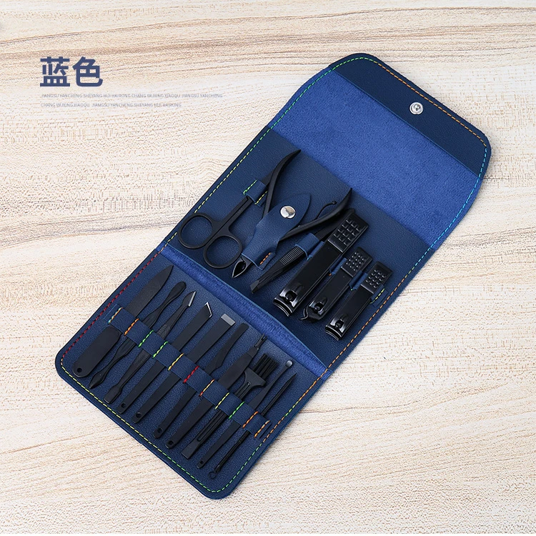 Включает кусачки для ногтей для пальцев и ногтей, пилинг ножей, триммеры для кутикулы, кусачки для ногтей, пилочка для ногтей, v-образная палочка, пинцет для бровей, многофункциональные ножницы, игла для удаления угрей с петлей и ушной палкой