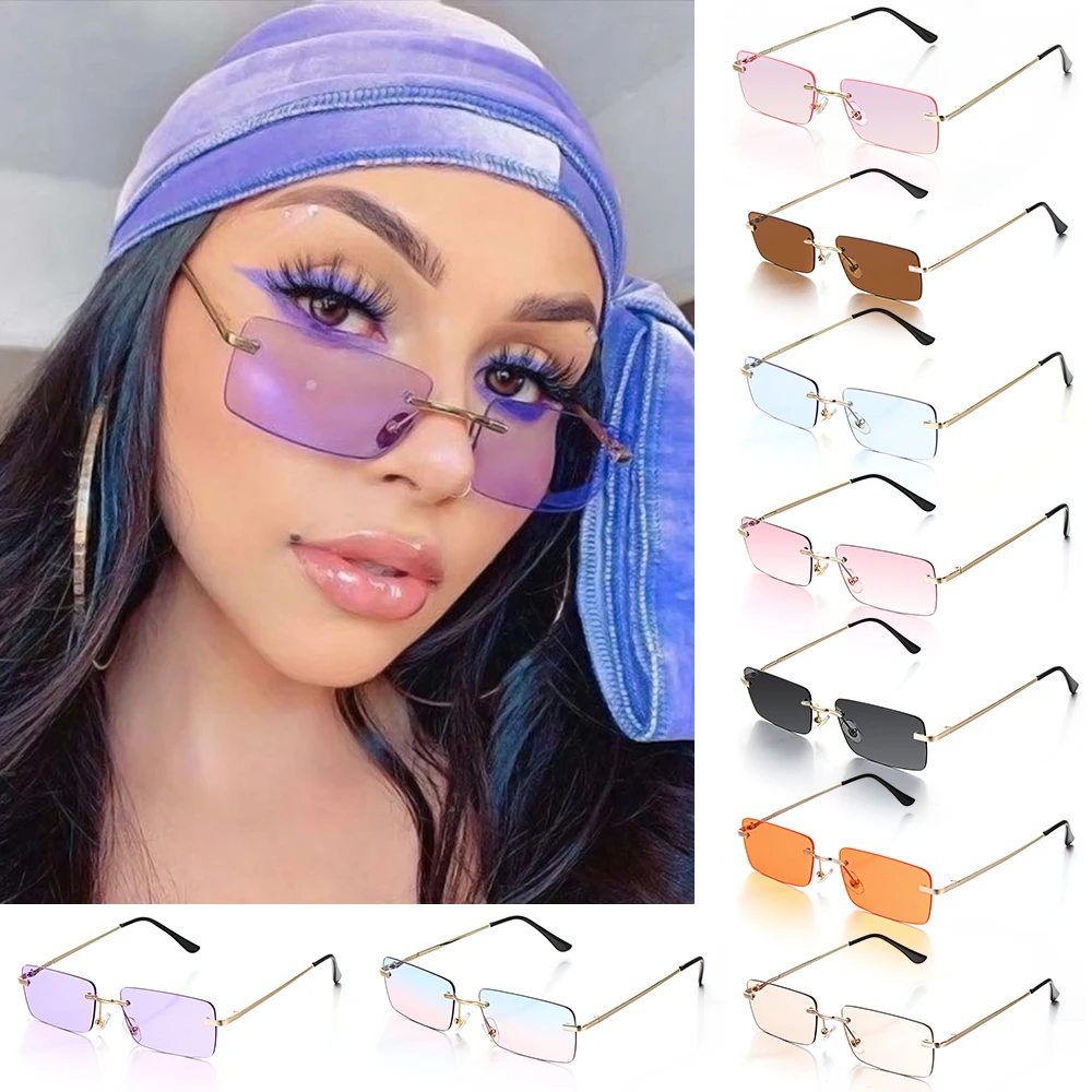 2020 модные новые унисекс прямоугольные женские солнцезащитные очки без оправы Ретро градиентные очки UV400 для езды на велосипеде