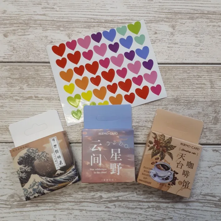 наклейки просто суперские ,эстетика зашкаливает продавец даже положил мининаклеечки с сердечками,так мило:3