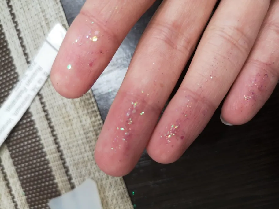 Заказ дошел ло Астрахани за 18 дней. Блесточки красивые, мелкие, но они полупрозрачные Заказывала 4 цвета и все на ногте отливают просто розовым.Можно было заказать какую то одну. Баночки наполнены до краев.Хватит очень на долго.