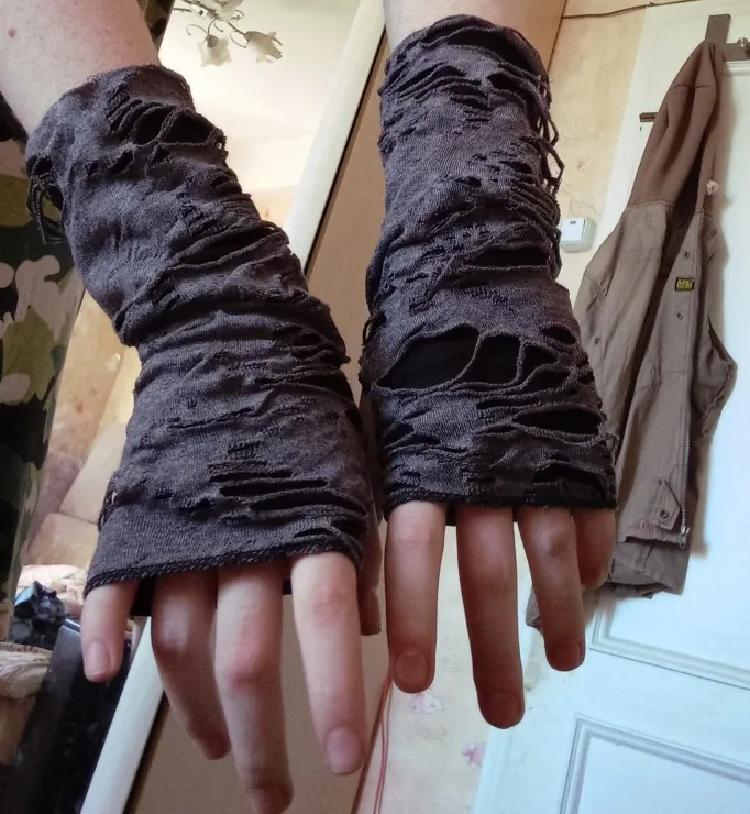 Отверстия для большого пальца немного слишком тугие для больших пальцев, но на ощупь нормально, хорошее качество по своей цене! Рипы выглядят немного идеально, но я уверен, что они будут порвать больше при использовании :)