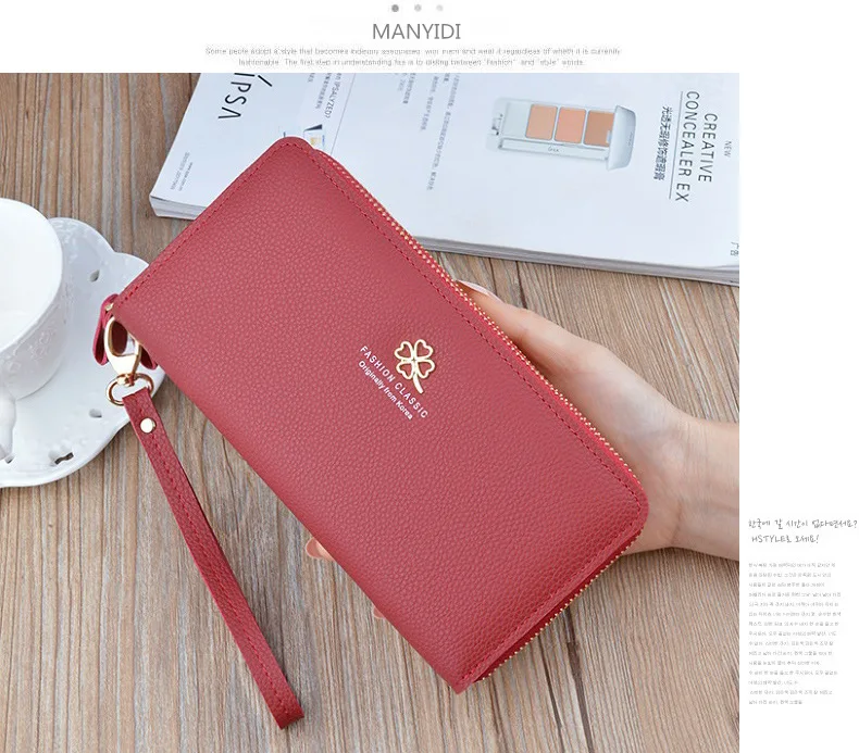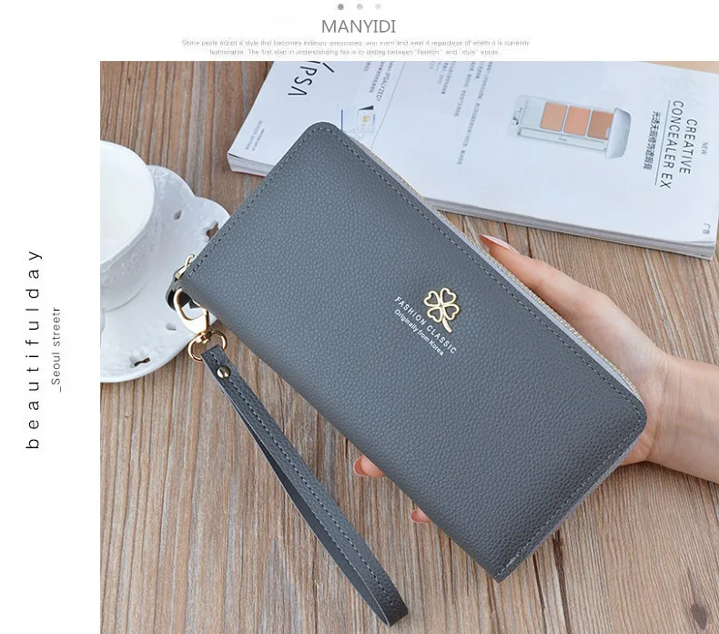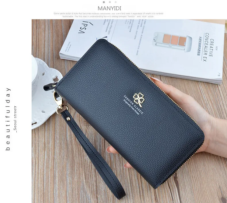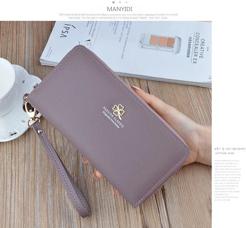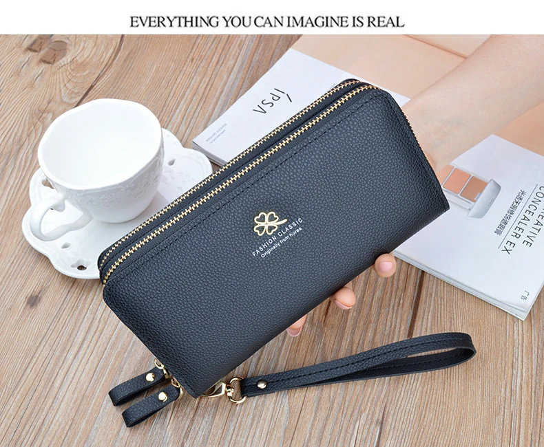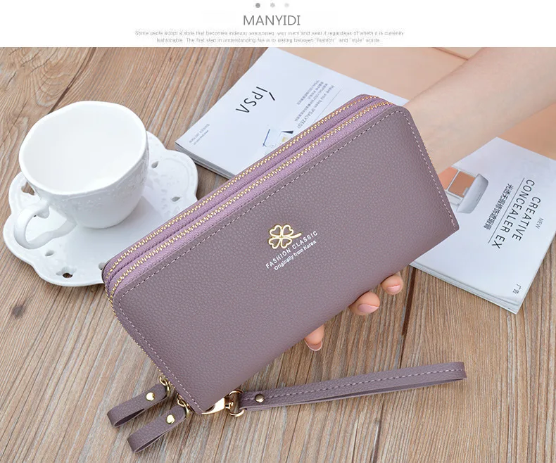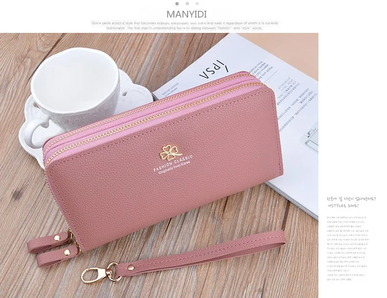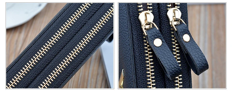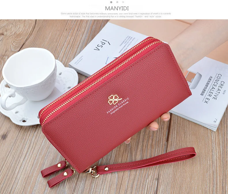 Новый стиль, Дамский кошелек, женский длинный клатч с двойной молнией, модный двойной кошелек большой вместимости с рисунком личи, сумка Мобильный телефон