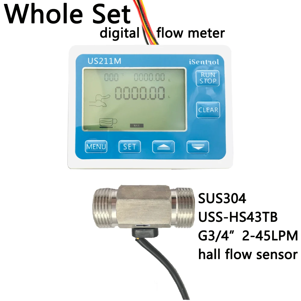 Цифровой тотализатор расхода US211M с датчиком потока SUS304, USS-HS43TB G34 "Датчик потока Холла 2-45LPM, iSentrol Saier Sesnor