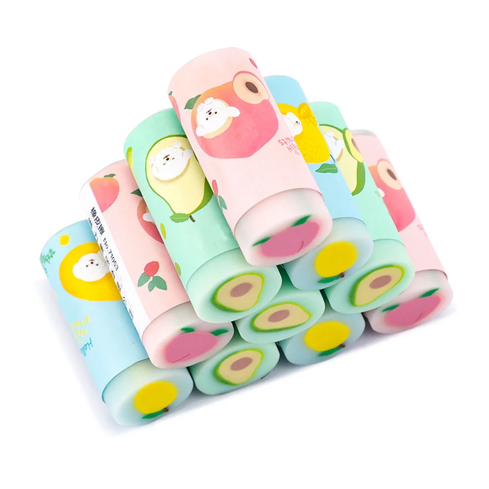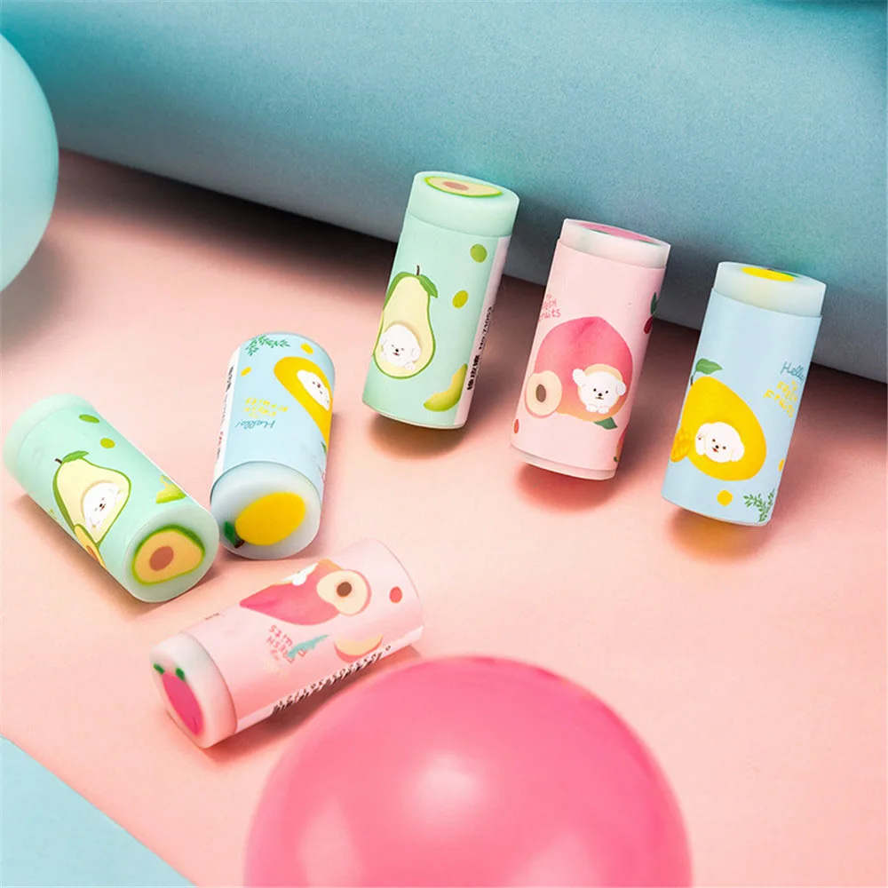 Cartoon Avocado Lemon Peach Erasers Kawaii Lipstick Shape Rubber Eraser School Stationary Office Correction Accessories